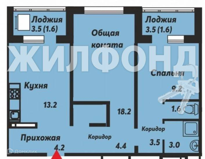 2-комнатная квартира, 57.4 м2, этаж 3 / 17, на продажу в Новосибирске, улица Николая Островского, 195