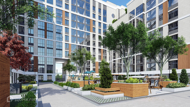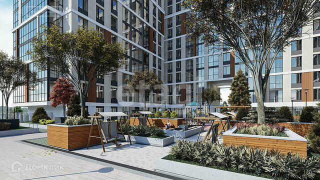 - зеленый, ухоженный двор с детской игровой площадкой