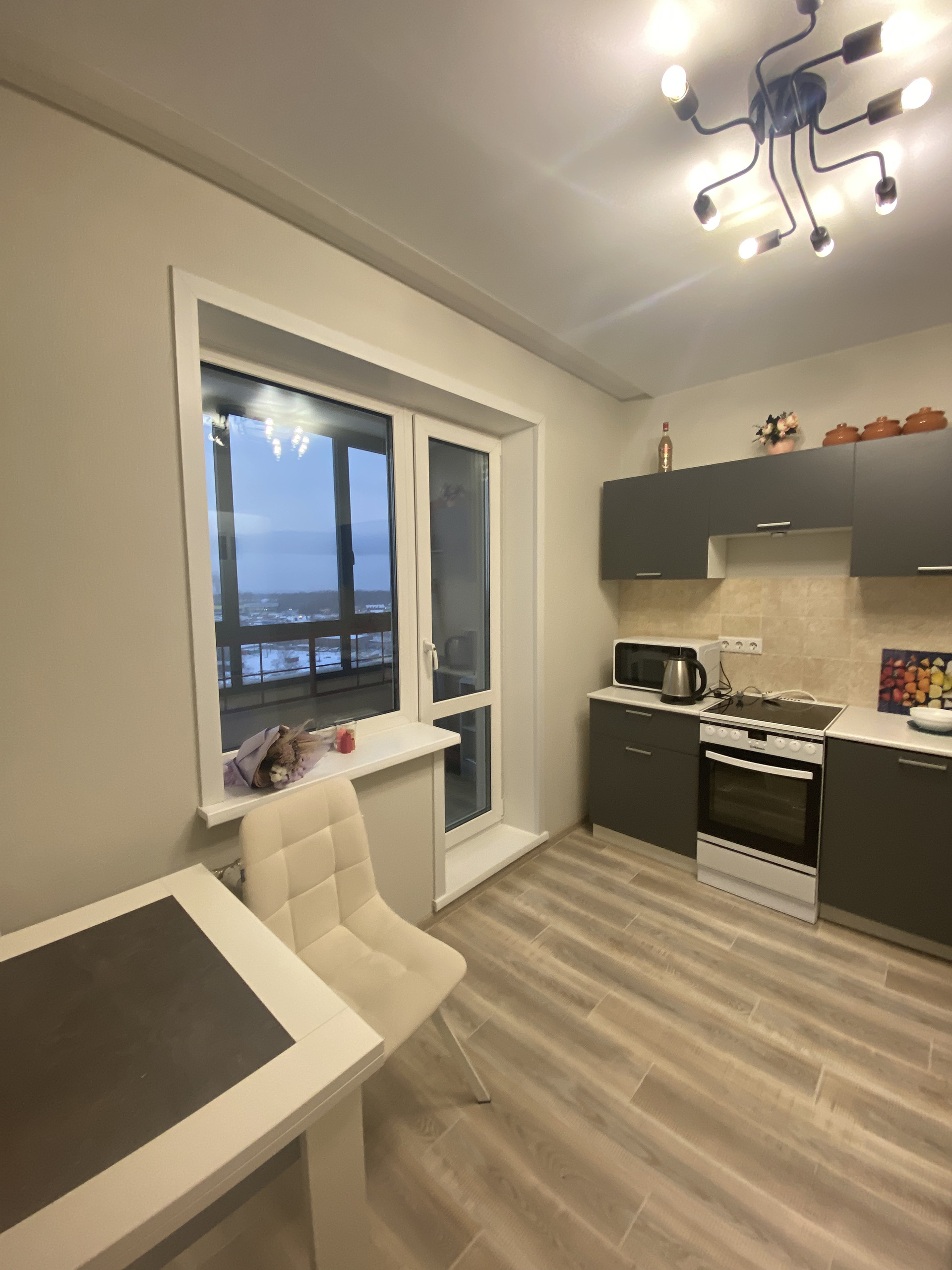 Имеется лоджия 9,4 кв.м с прекрасным видом на закат(выход из кухни и комнаты)