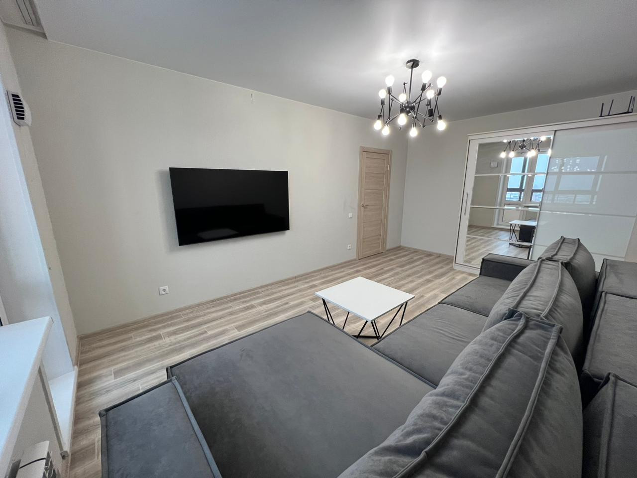 -комната: диван(3,5 в длину); журнальный столик; зеркальный шкаф купе;