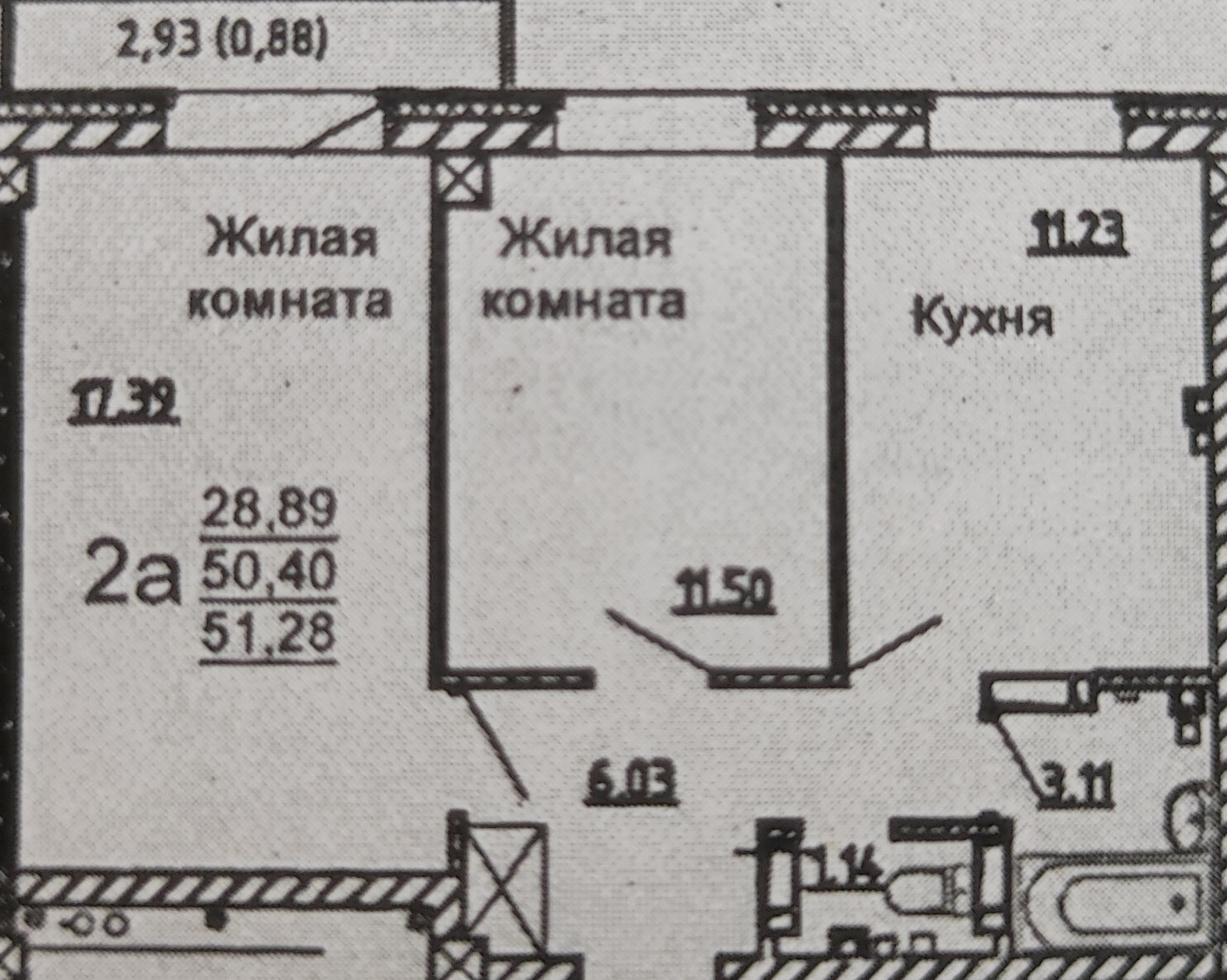 Общая площадь 51.2 м2