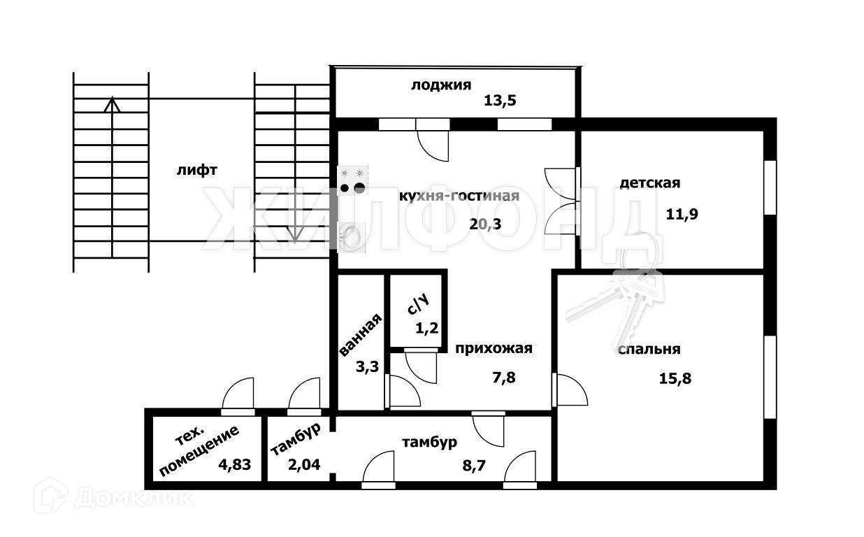 2-комнатная квартира, 65.4 м2, этаж 5 / 10, на продажу в Новосибирске, улица Аникина, 37/1