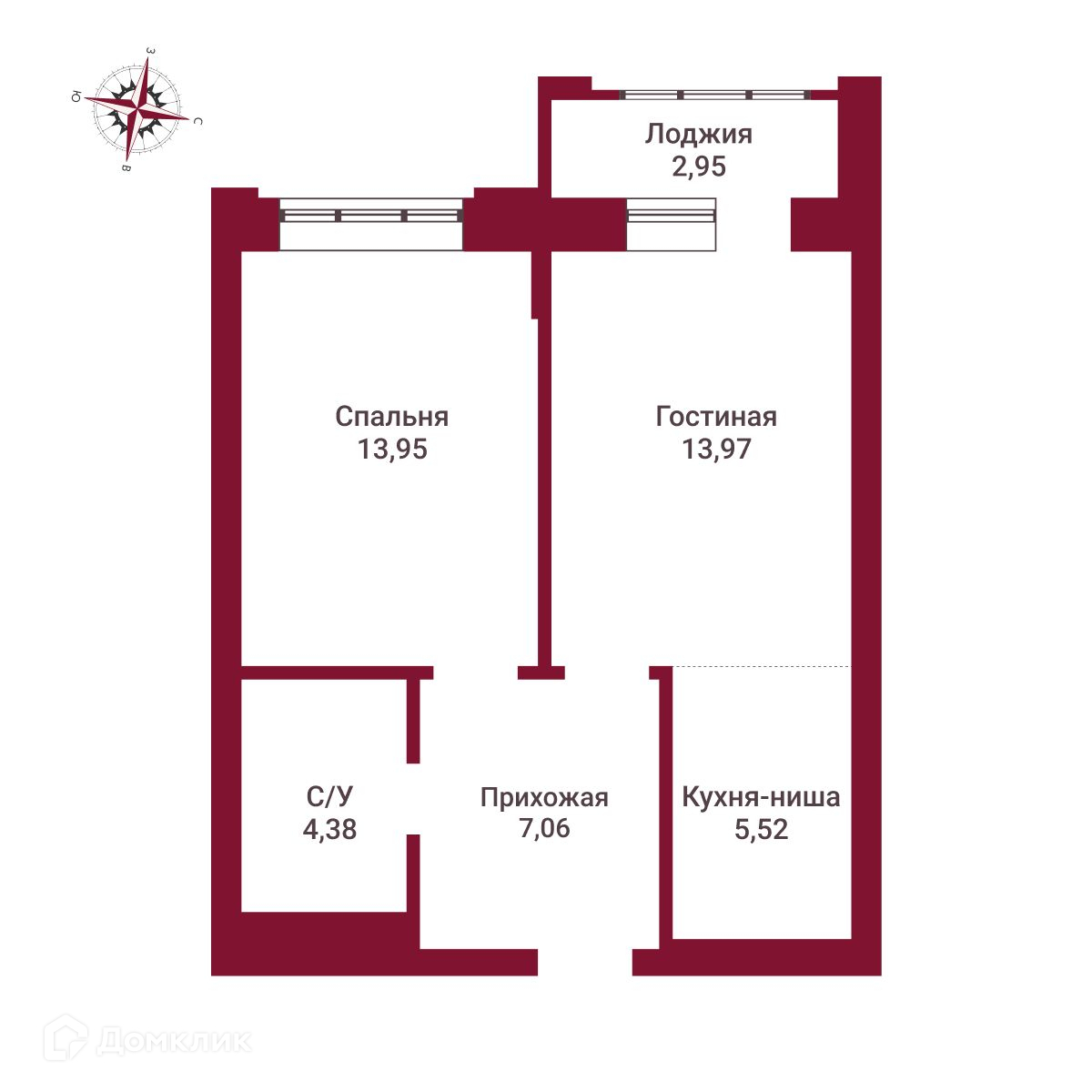 Общая площадь 47.83 м2