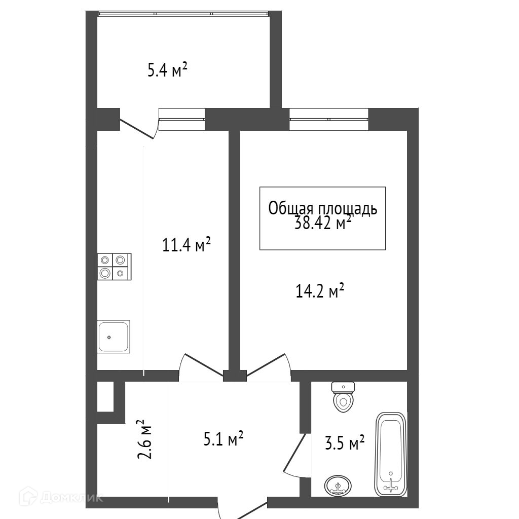 Общая площадь 38.42 м2