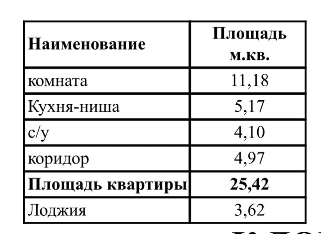 Общая площадь 25.42 м2