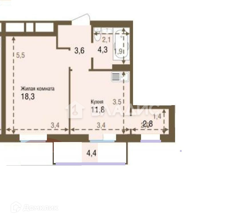 Жилая площадь 18.5 м2