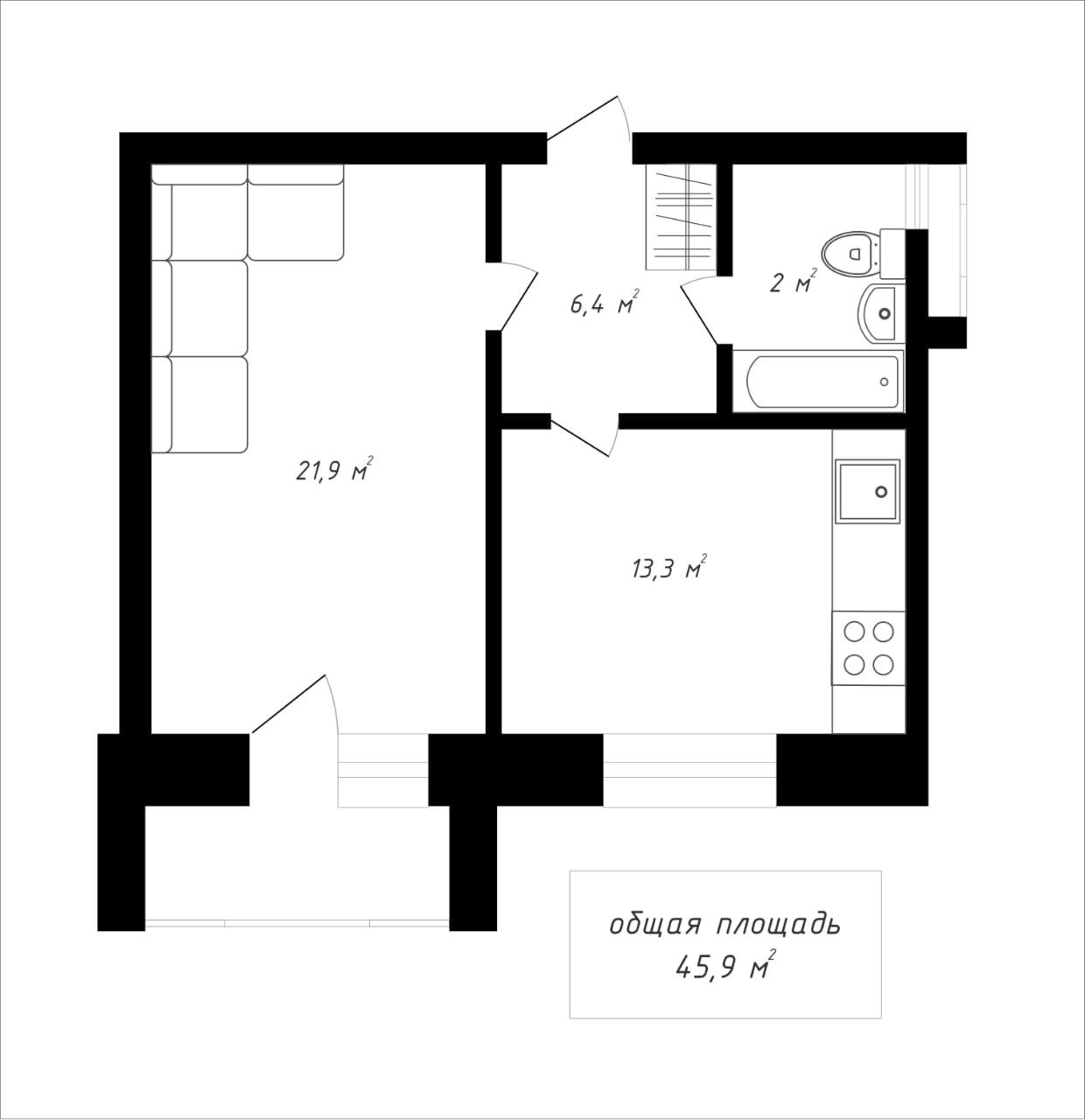 Общая площадь 45.9 м2