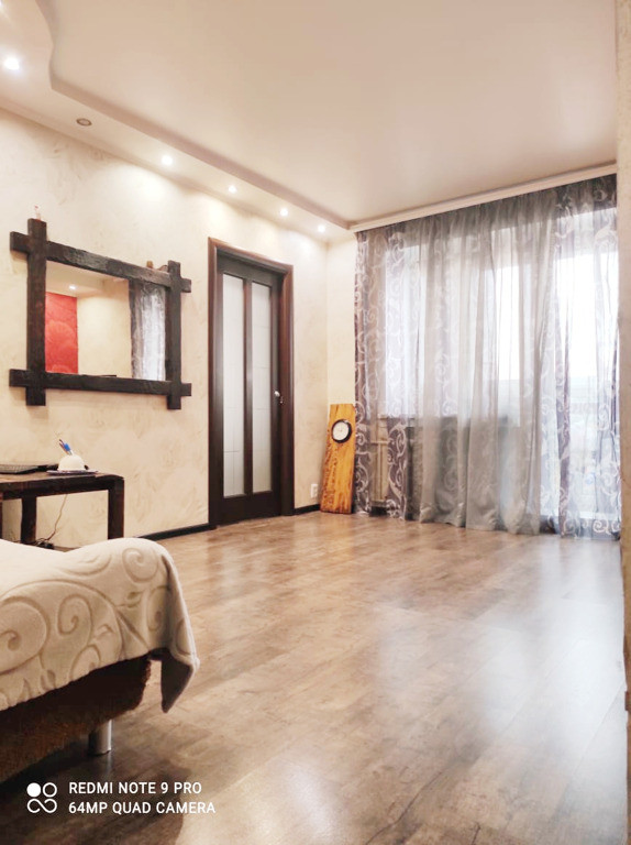 В квартире сделана перепланировка (узаконено). На данный момент планировкой предусмотрено: две спальни, гостиная, гардеробная (6 кв.м.) и кухня.