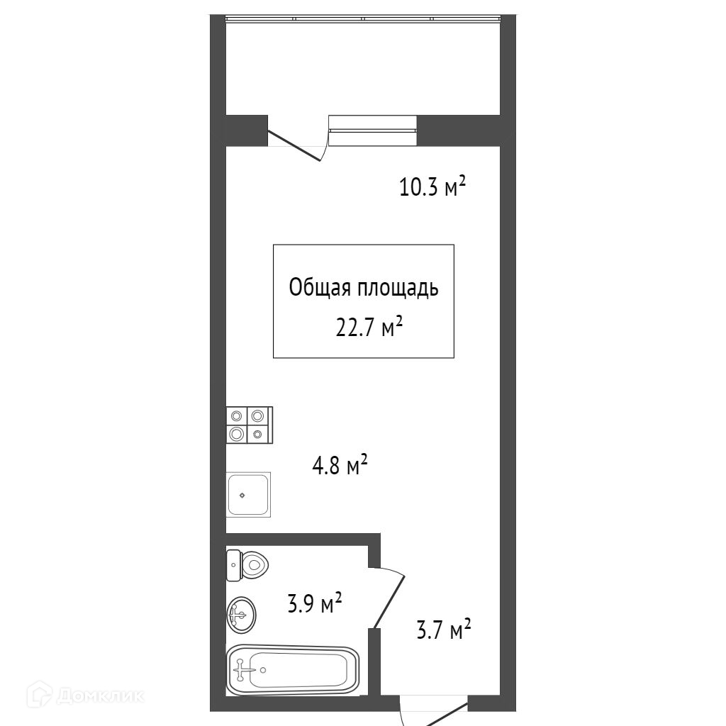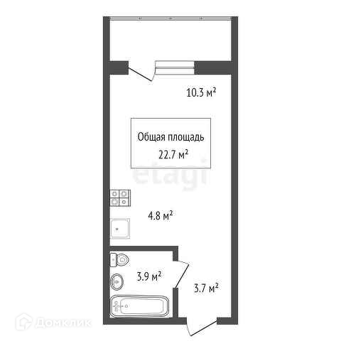 Общая площадь 22.7 м2