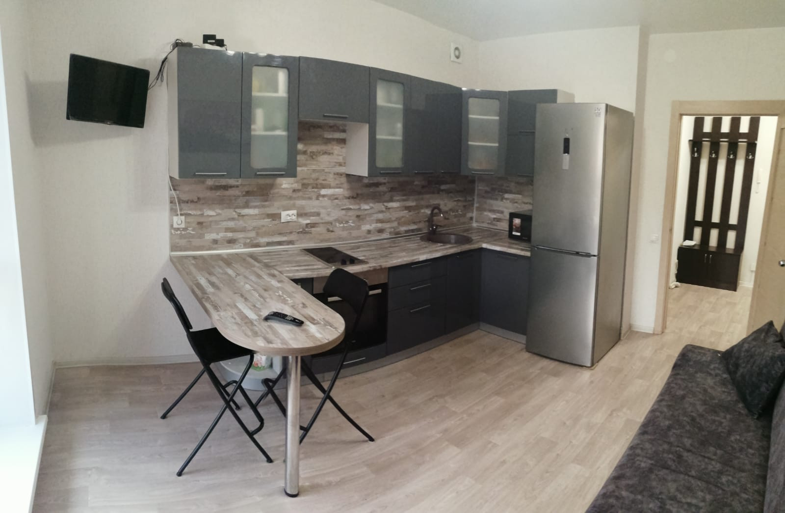 Территория огорожена, видеонаблюдение, уникальные детские игровые и спортивные зоны: скалодром, веревочные комплексы, своя сценическая площадка, футбольное поле. Дом кирпичный, установлен лифт. Возле ЖК остановка общественного транспорта, маршрутки ходят каждые 10 минут. На территории ЖК супермаркет Магнит. в подарок покупателю остается кухонный гарнитур