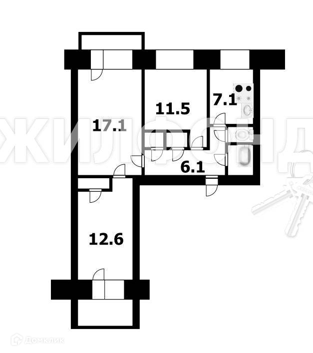 3-комнатная квартира, 59.4 м2, этаж 8 / 9, на продажу в Новосибирске, Московская улица, 165