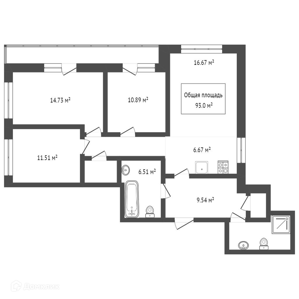 Общая площадь 93 м2