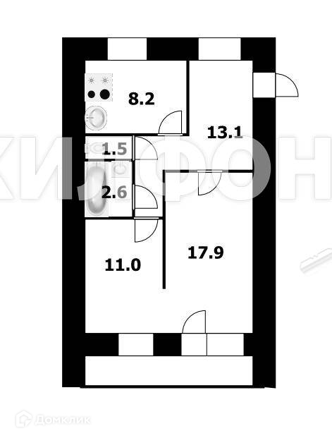 Жилая площадь 28.9 м2