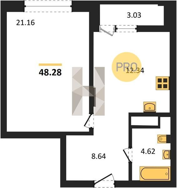 Общая площадь 48.28 м2