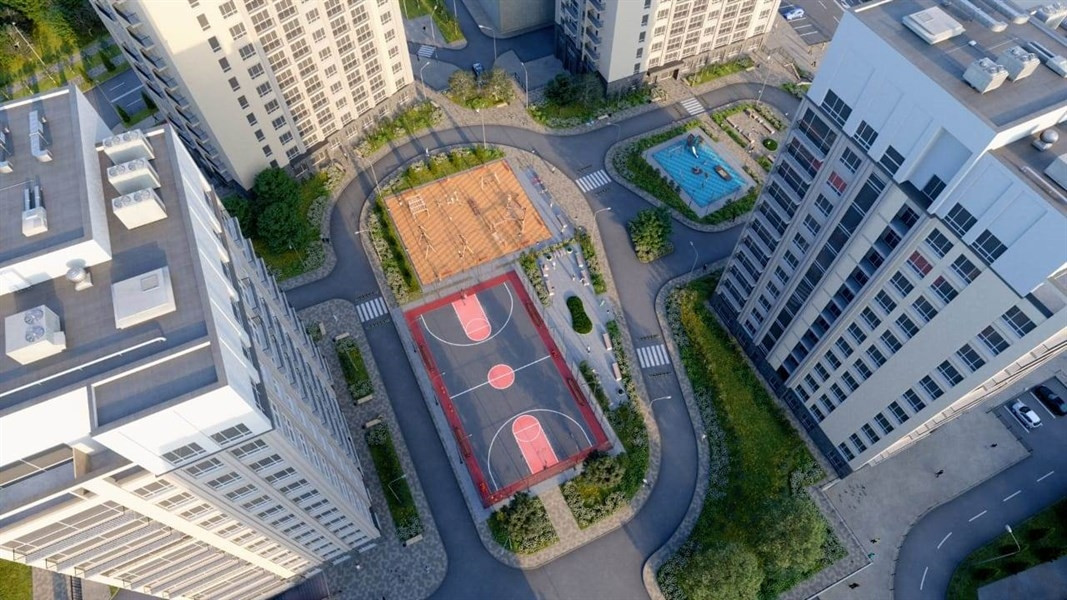 В радиусе 1 километра расположены детский садик и школа, продуктовые магазины, аптеки, банки и ТЦ.