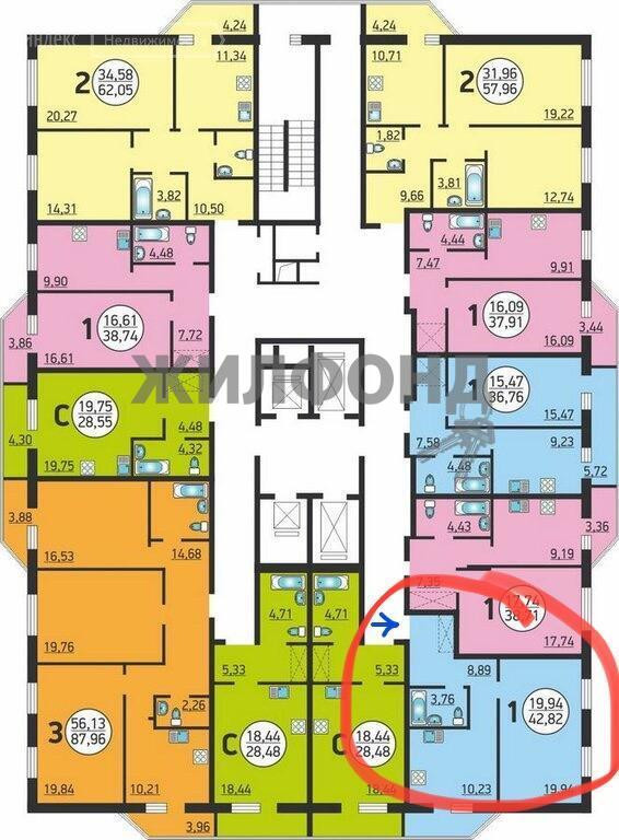 2-комнатная квартира, 42.4 м2, этаж 2 / 25, на продажу в Новосибирске, улица Писарева, 125