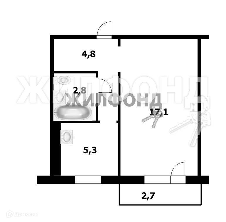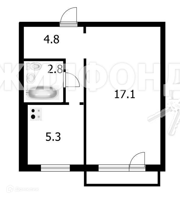Жилая площадь 17.1 м2
