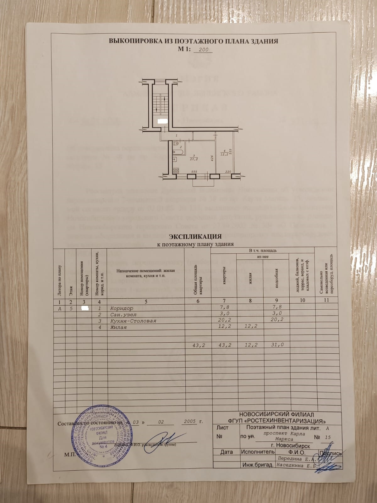 2-комнатная квартира, 43.2 м2, этаж 5 / 5, на продажу в Новосибирске, проспект Карла Маркса, 15