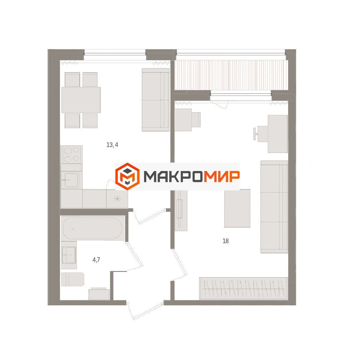 Площадь кухни 13.4 м2