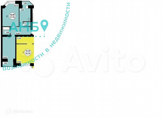 Общая площадь 72 м2