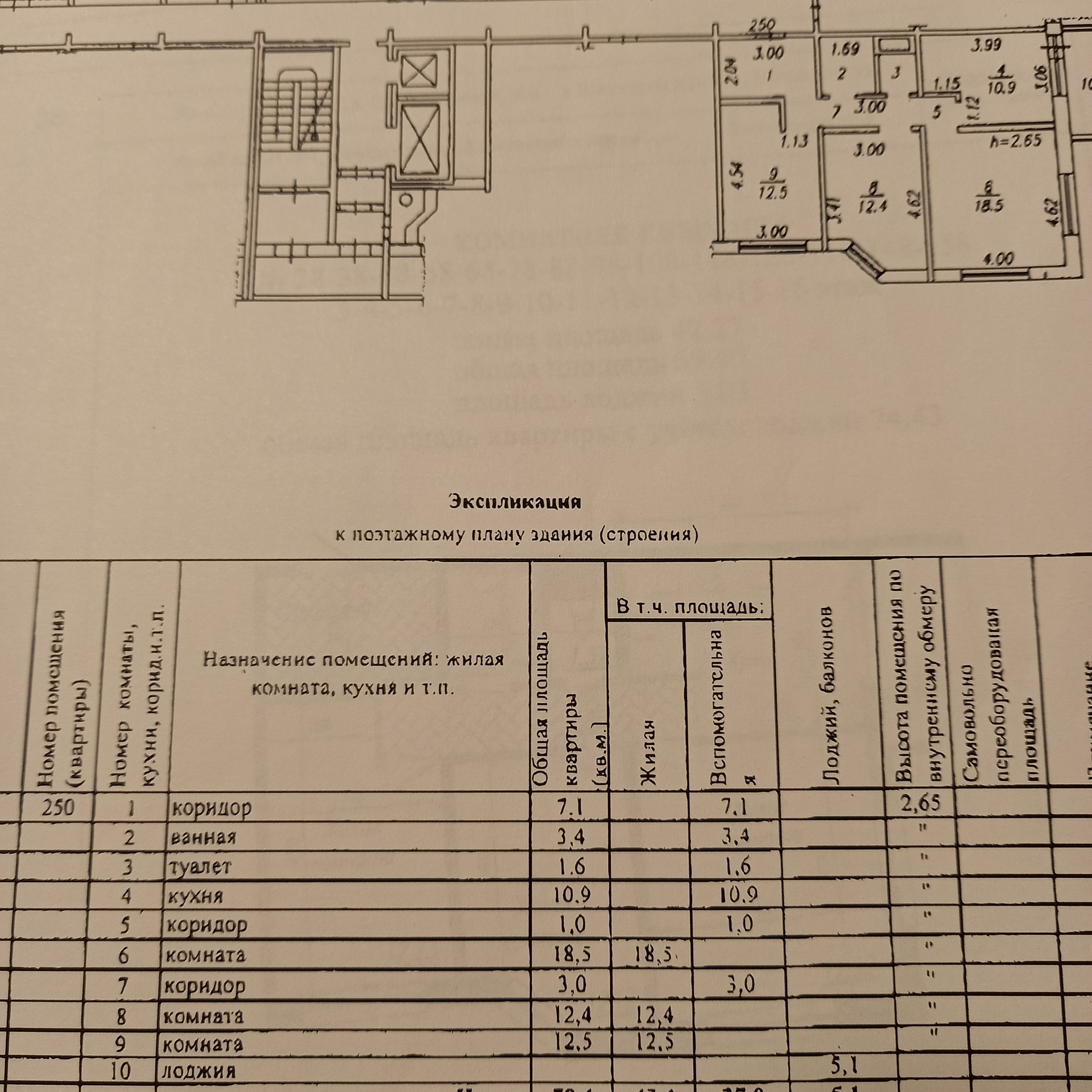Высота потолков 2.65 м