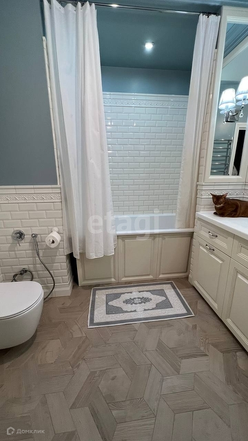 Ванная комната оформлена итальянской плиткой с сантехникой Grоhе и ванной Villеrоу Восh. Все элементы в ванной (тумба, дверь для бойлера, закрывашка ванны) выполнены под заказ. Бойлер на 80 литров поможет, когда отключат воду, и посуду помыть тоже!