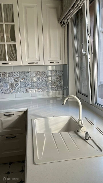 Столешницы в кухне и в ванне выполнены из искусственного камня.