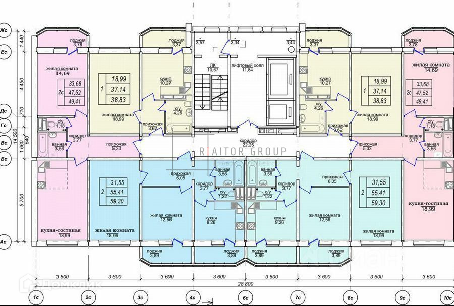 Общая площадь 49.55 м2