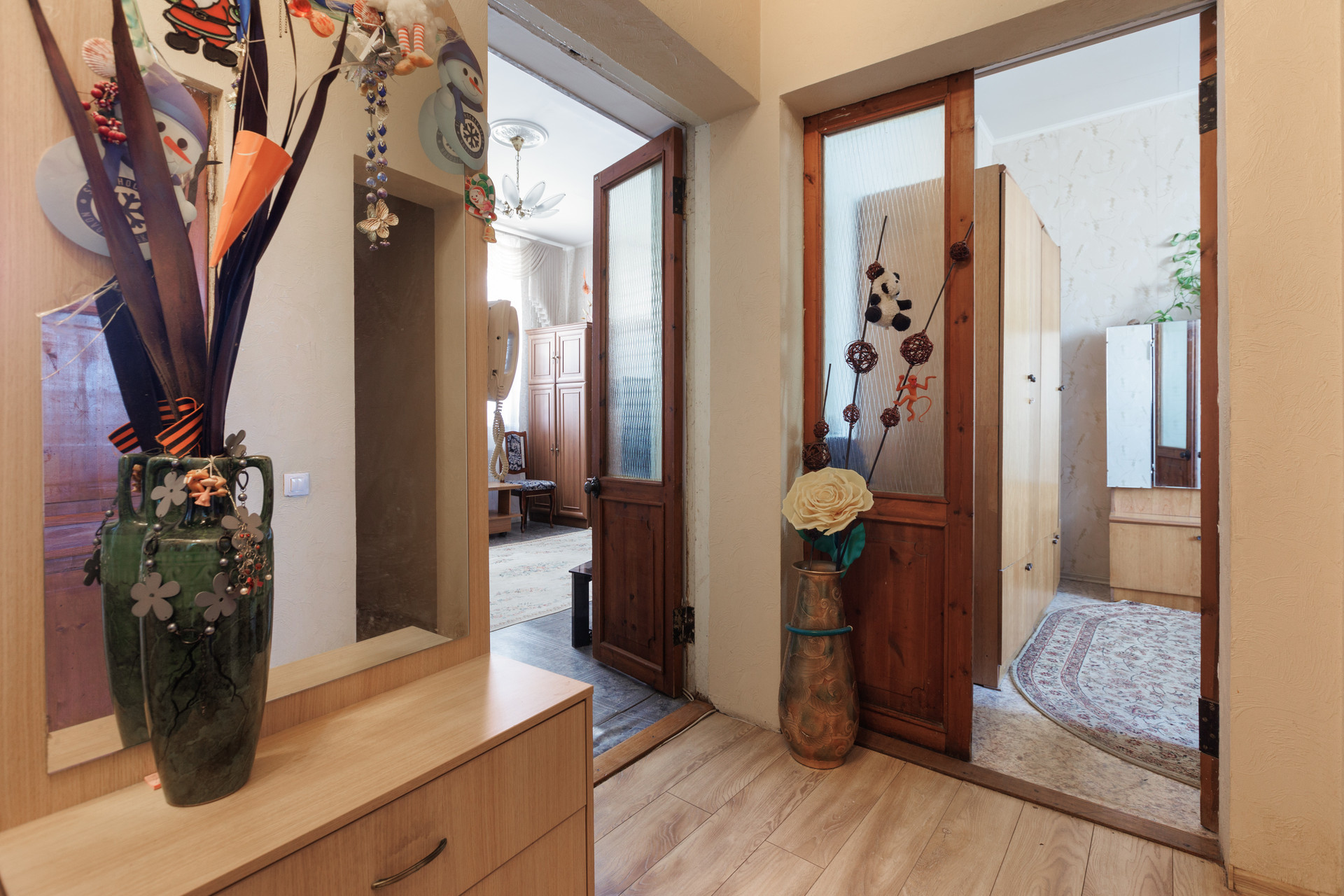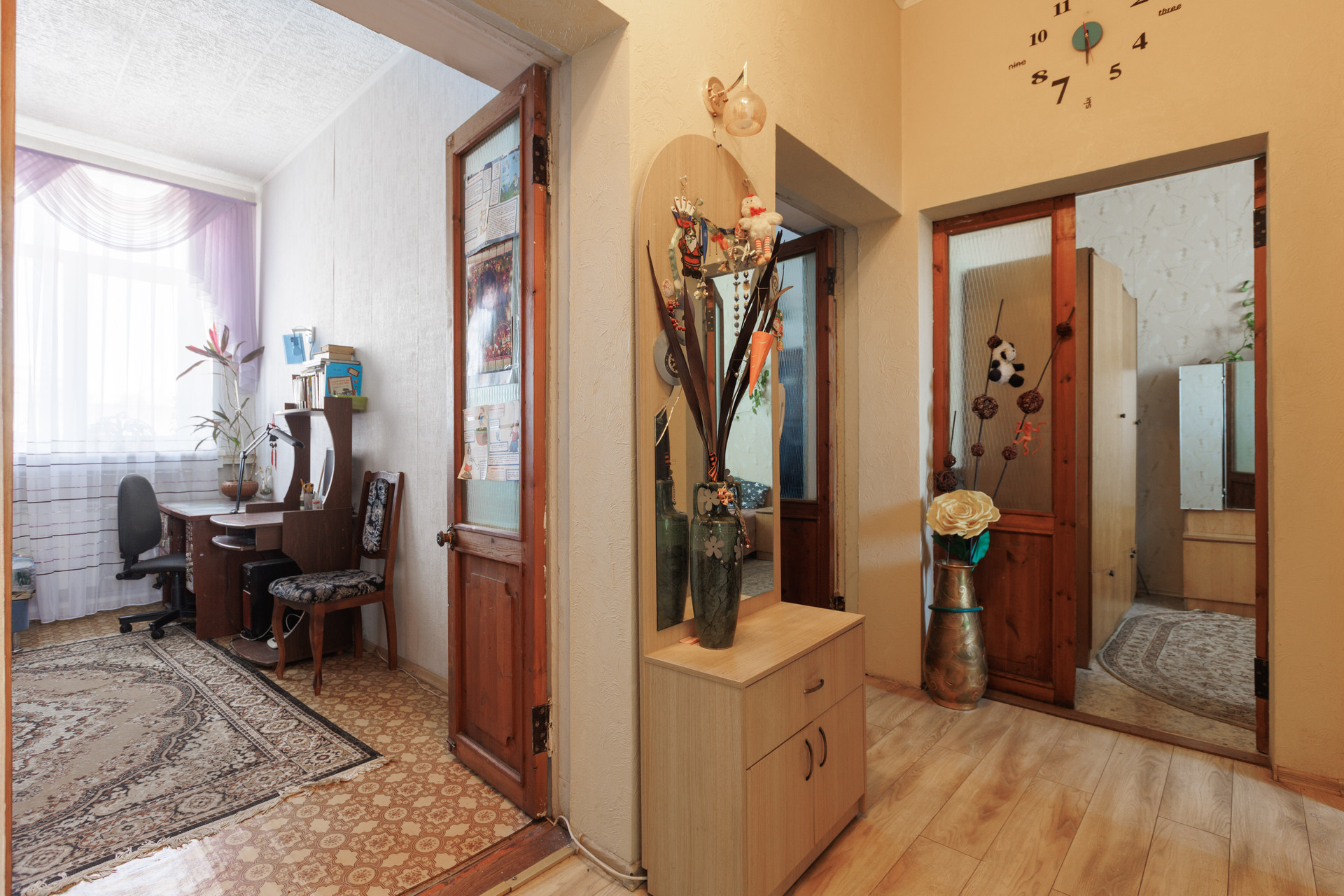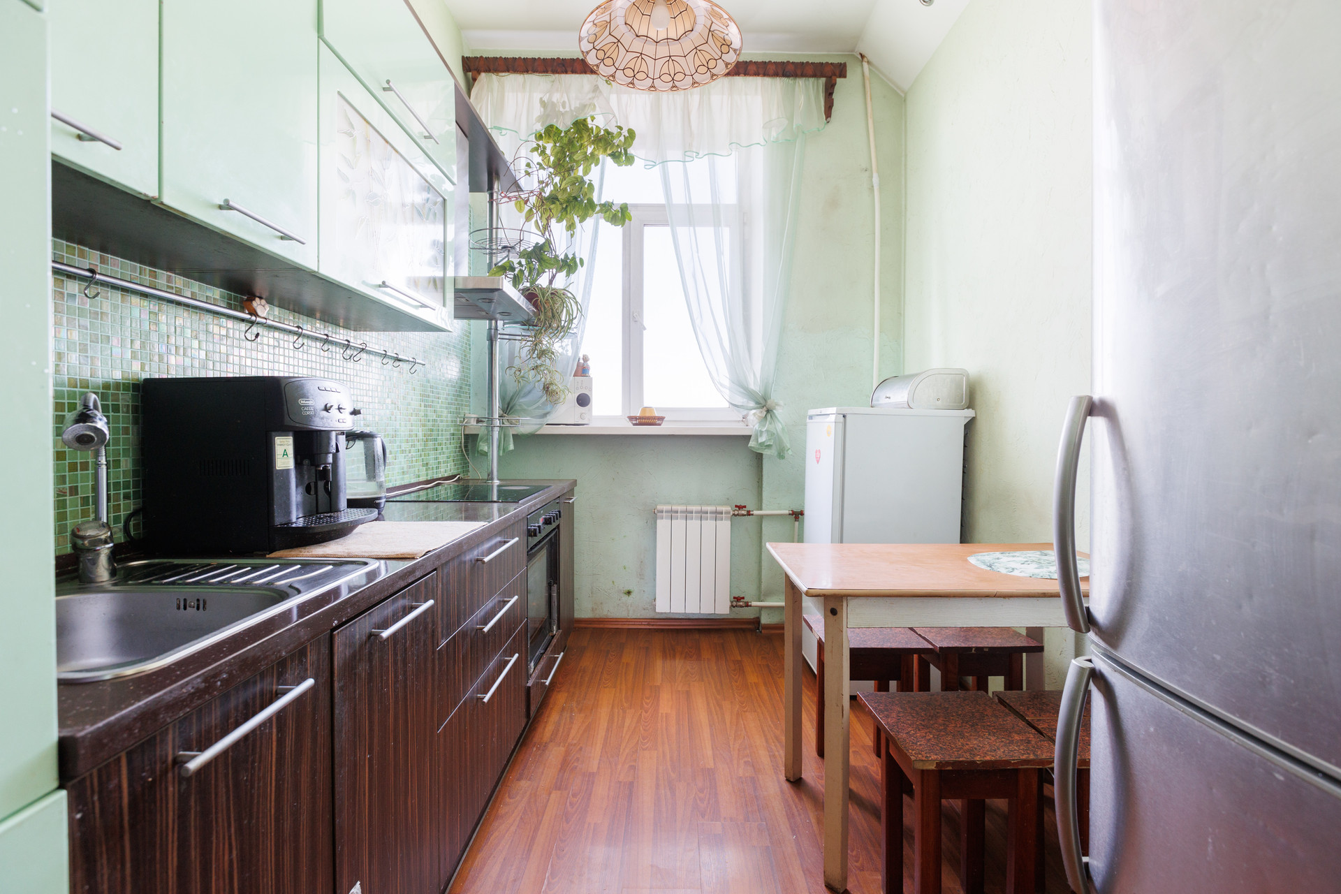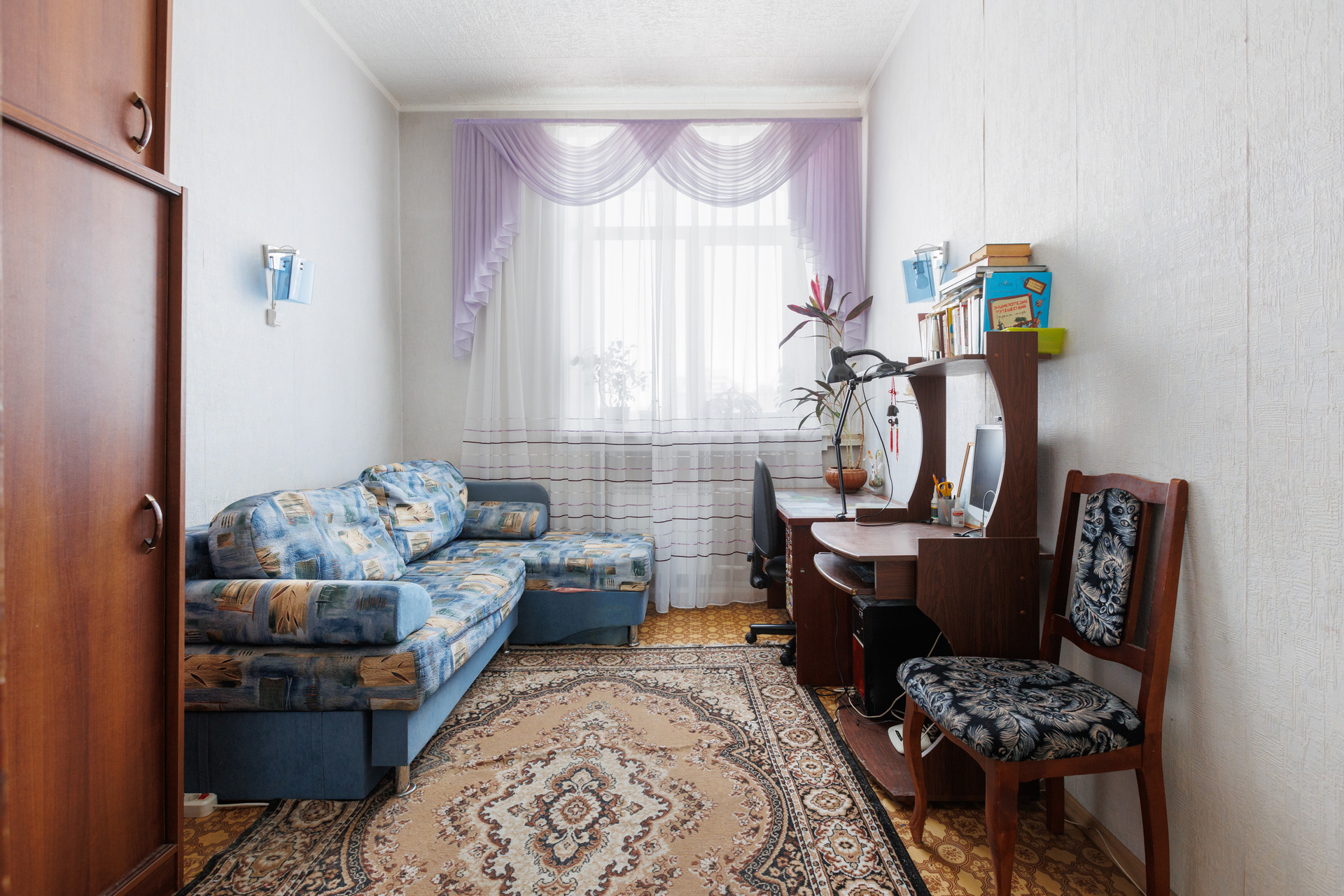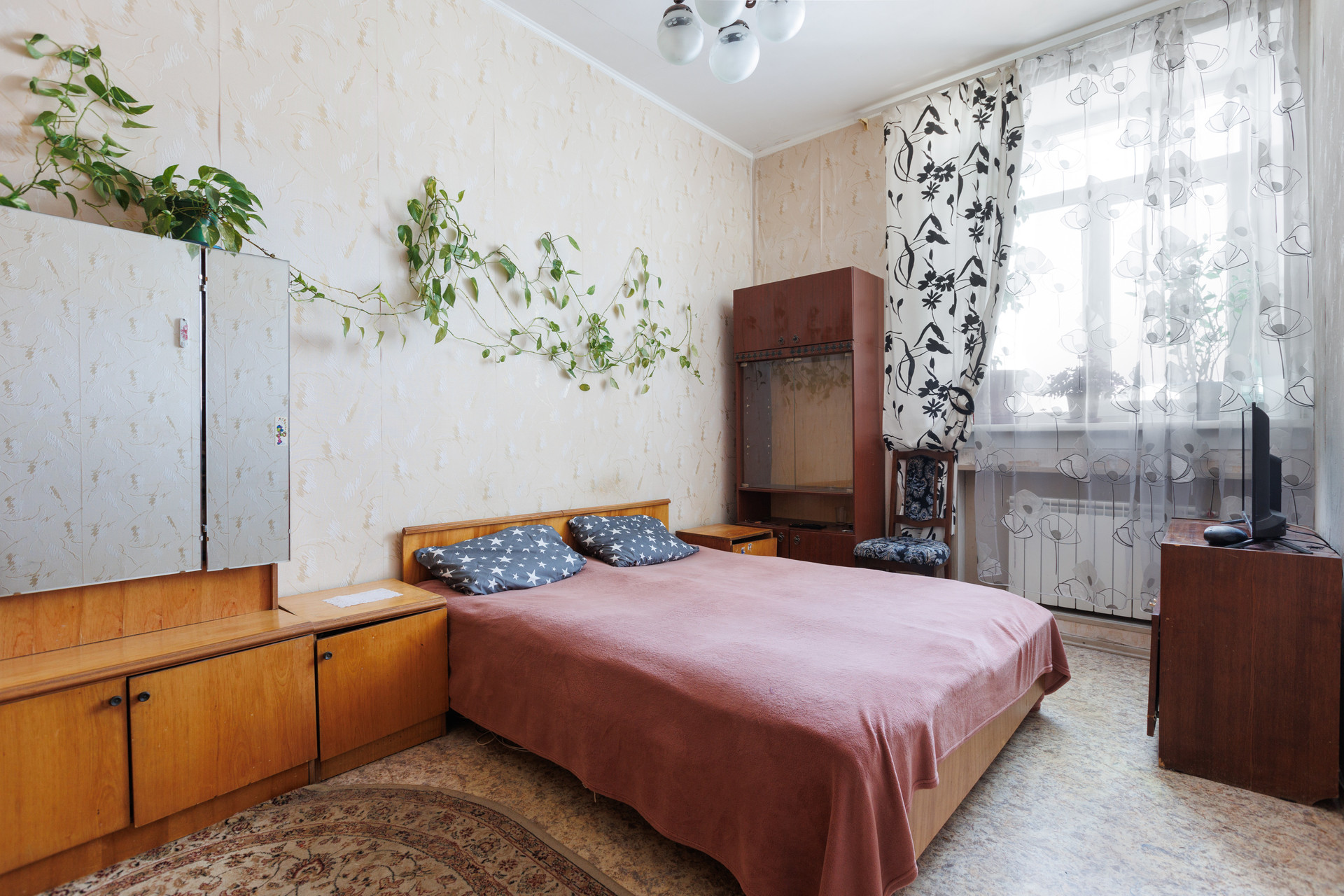 В квартире был сделан хороший ремонт, заменили отопление, электрику, сантехнику, пластиковые окна. Высокие потолки и хороший вид на город. Окно в ванной для удобства проветривания и естественного освещения. Все эти преимущества создают атмосферу свободы и простора.