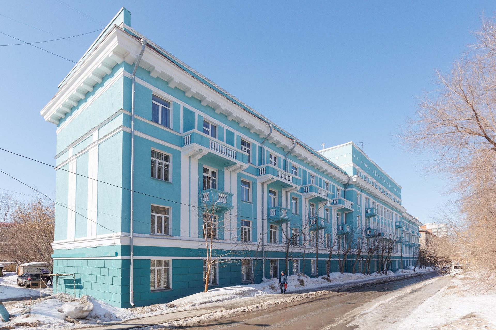 Заканчивается капитальный ремонт дома, остались работы в подъездах. Провели ремонт фасада, крыши, отопления, электропроводки, канализации.