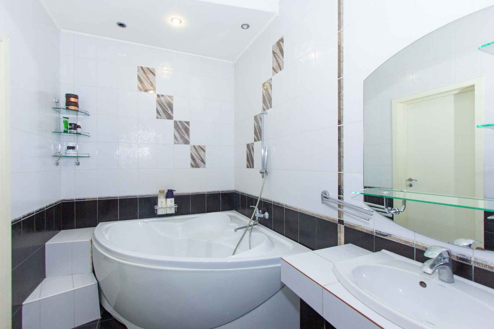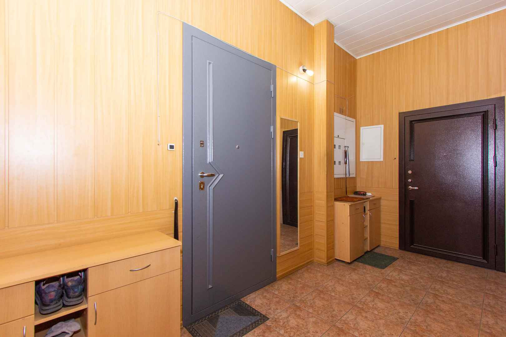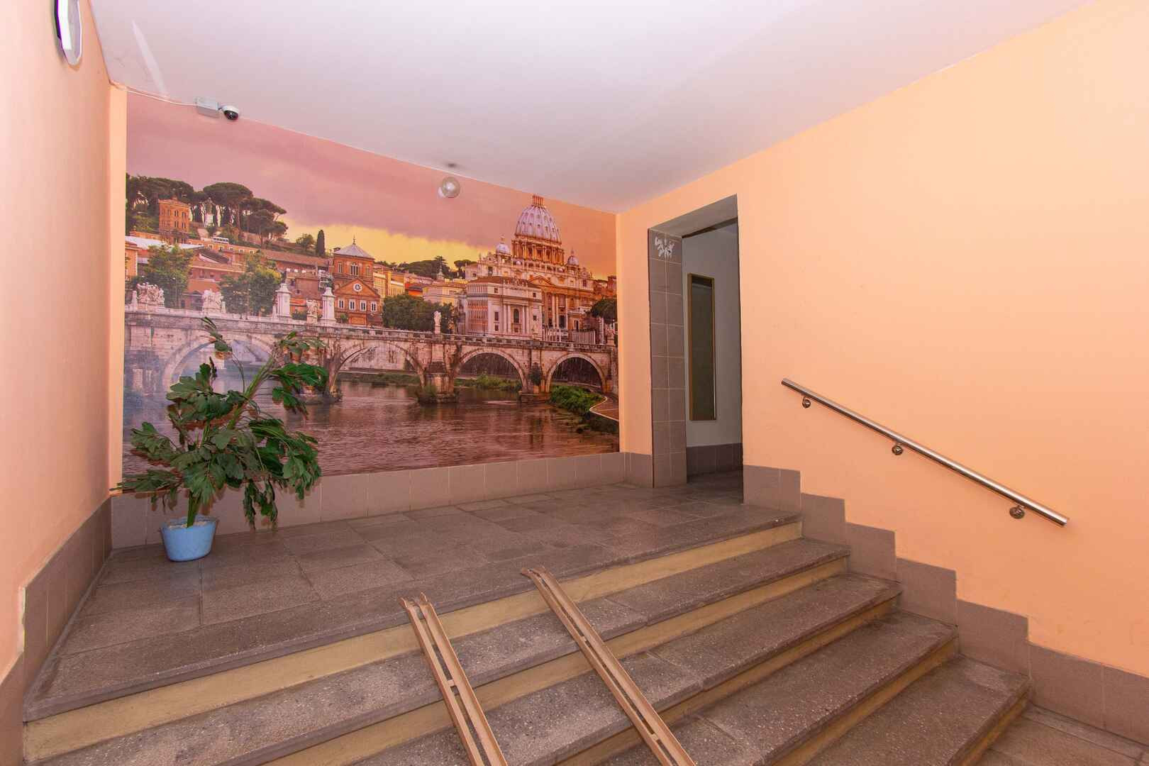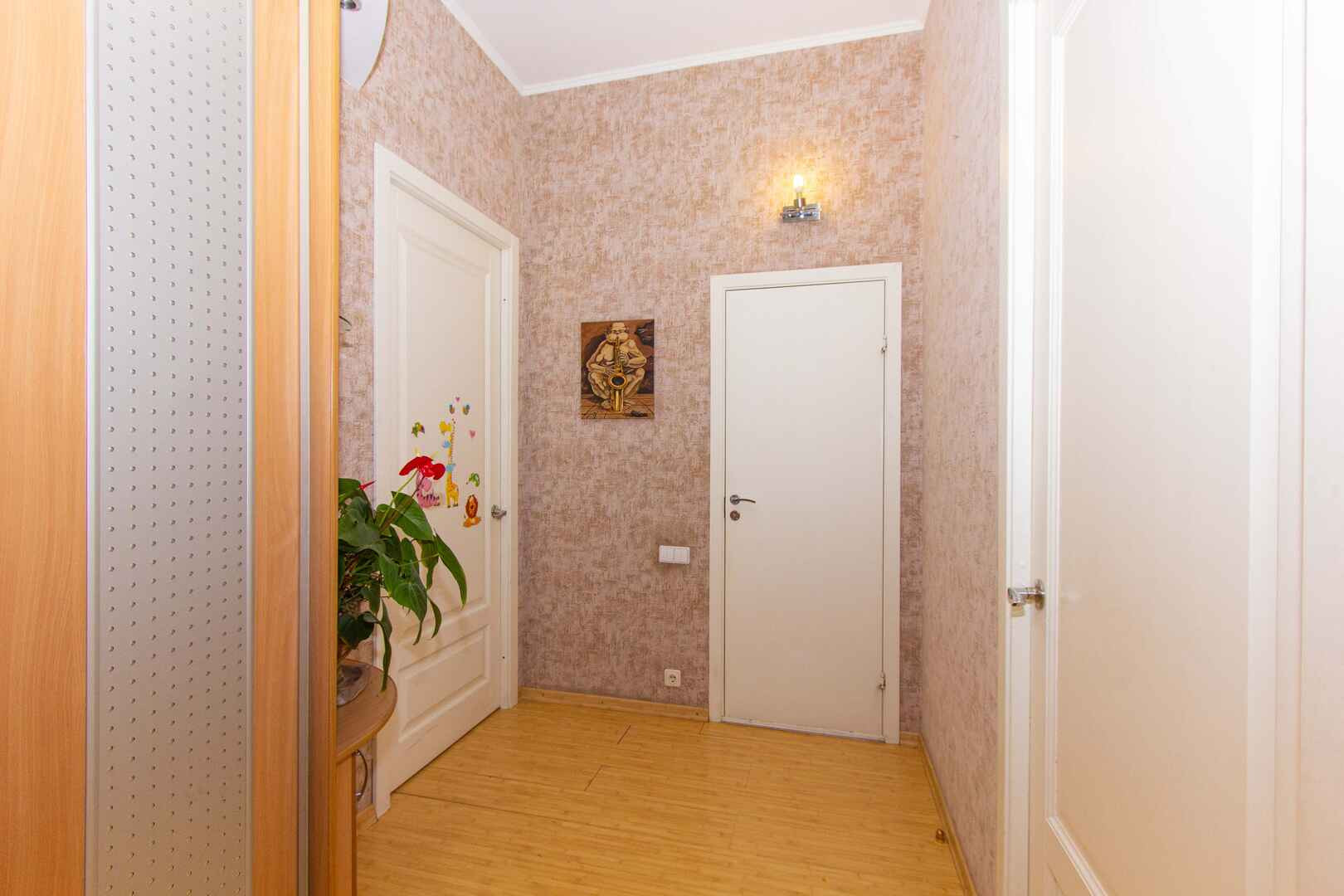 • перед входом в квартиру отдельная прихожая , есть даже ванная для любимых питомцев.