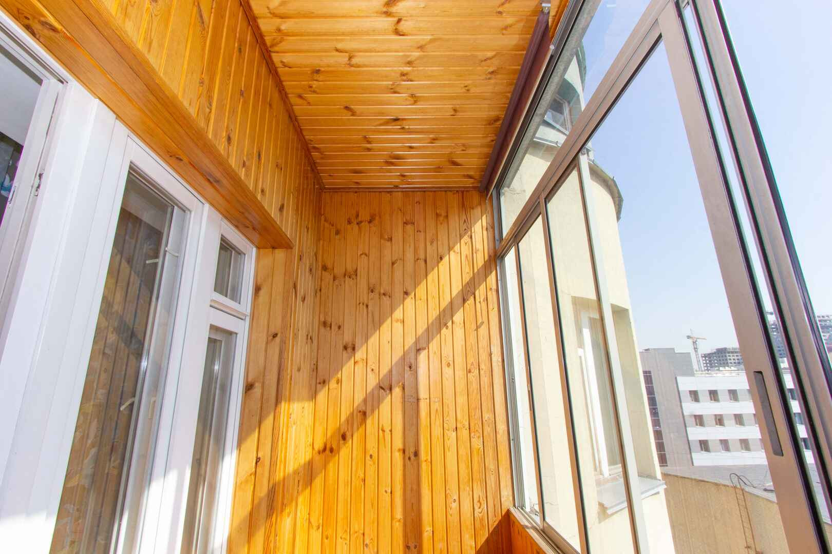 • две застекленные лоджии, обшитые деревом