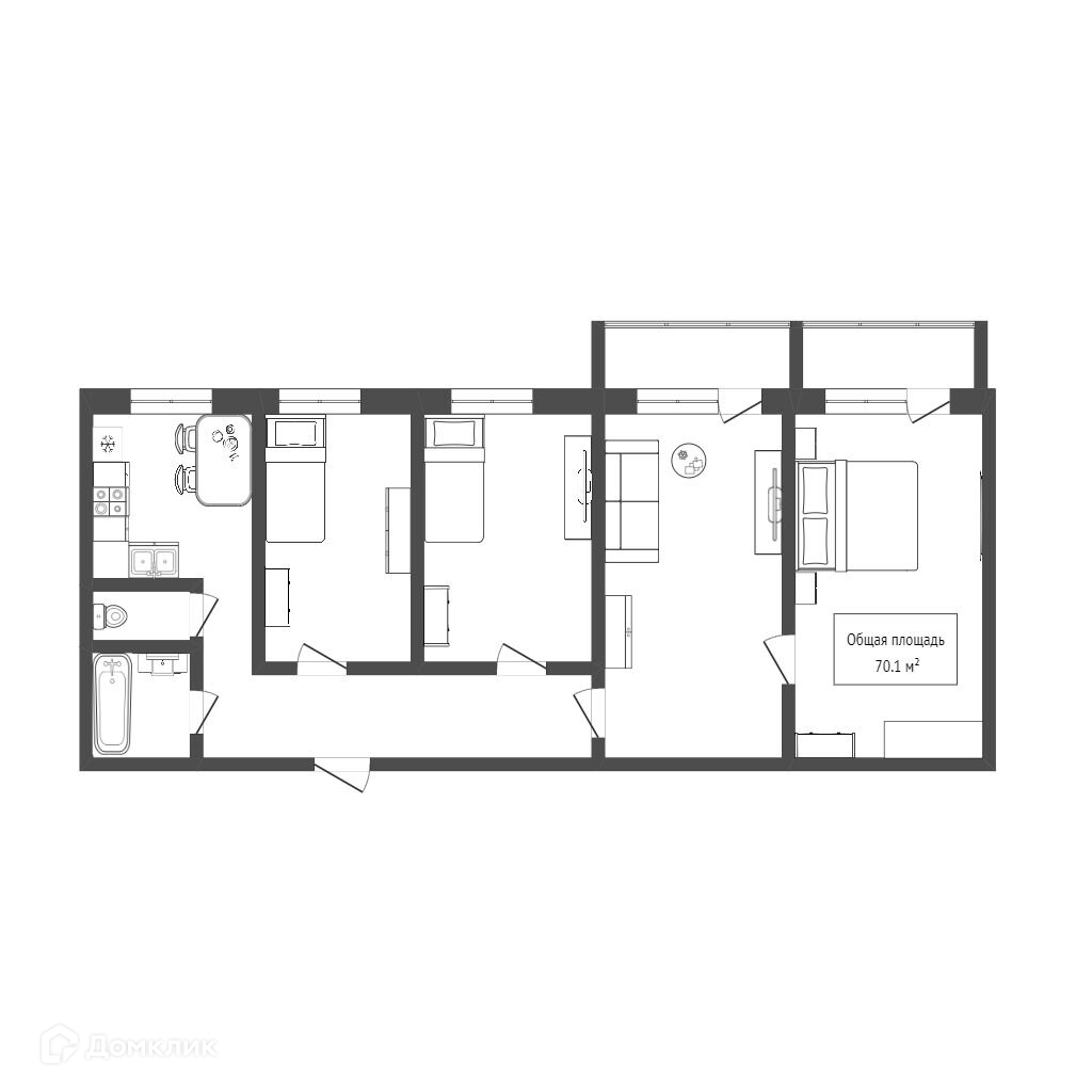 Общая площадь 70.1 м2