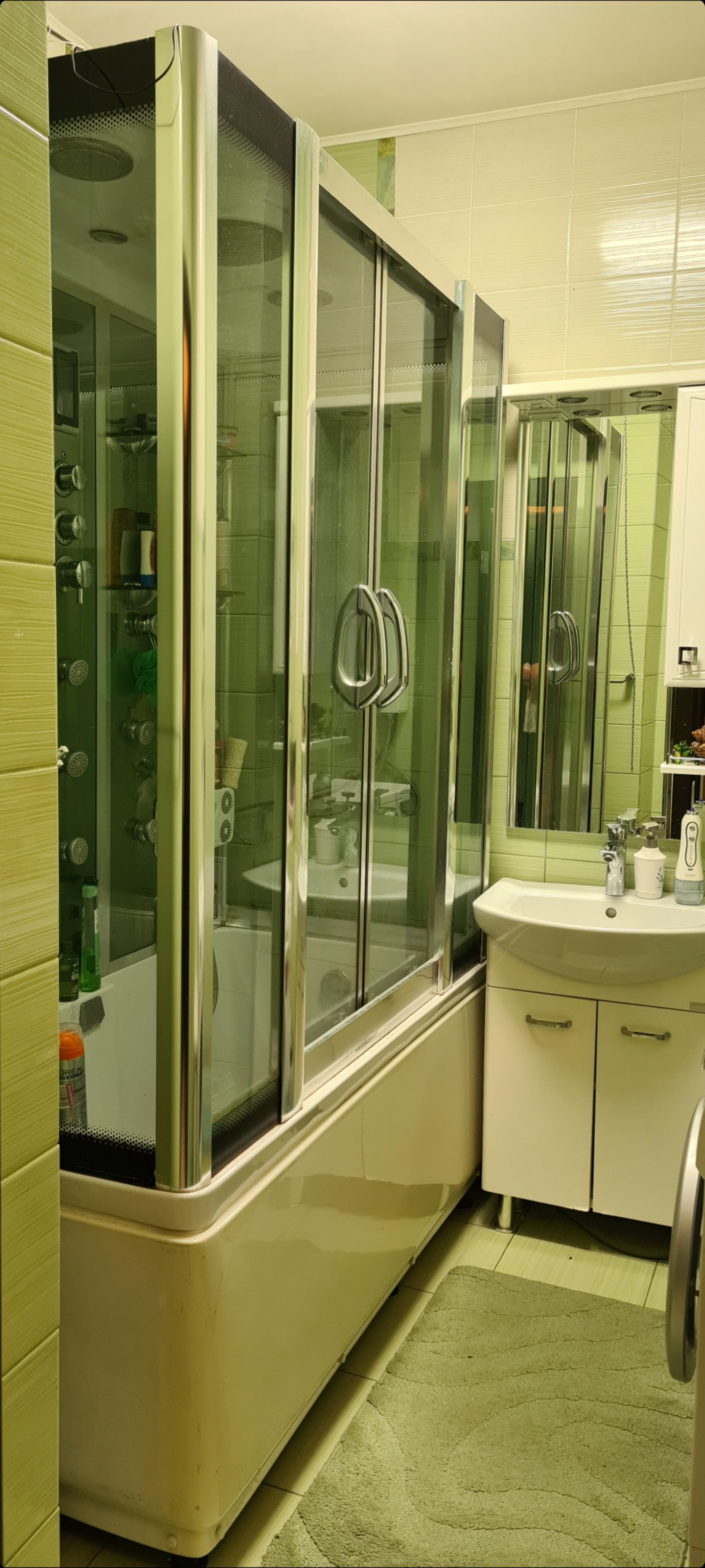 В ванной комнате остаётся душевая кабина тумба с раковиной.