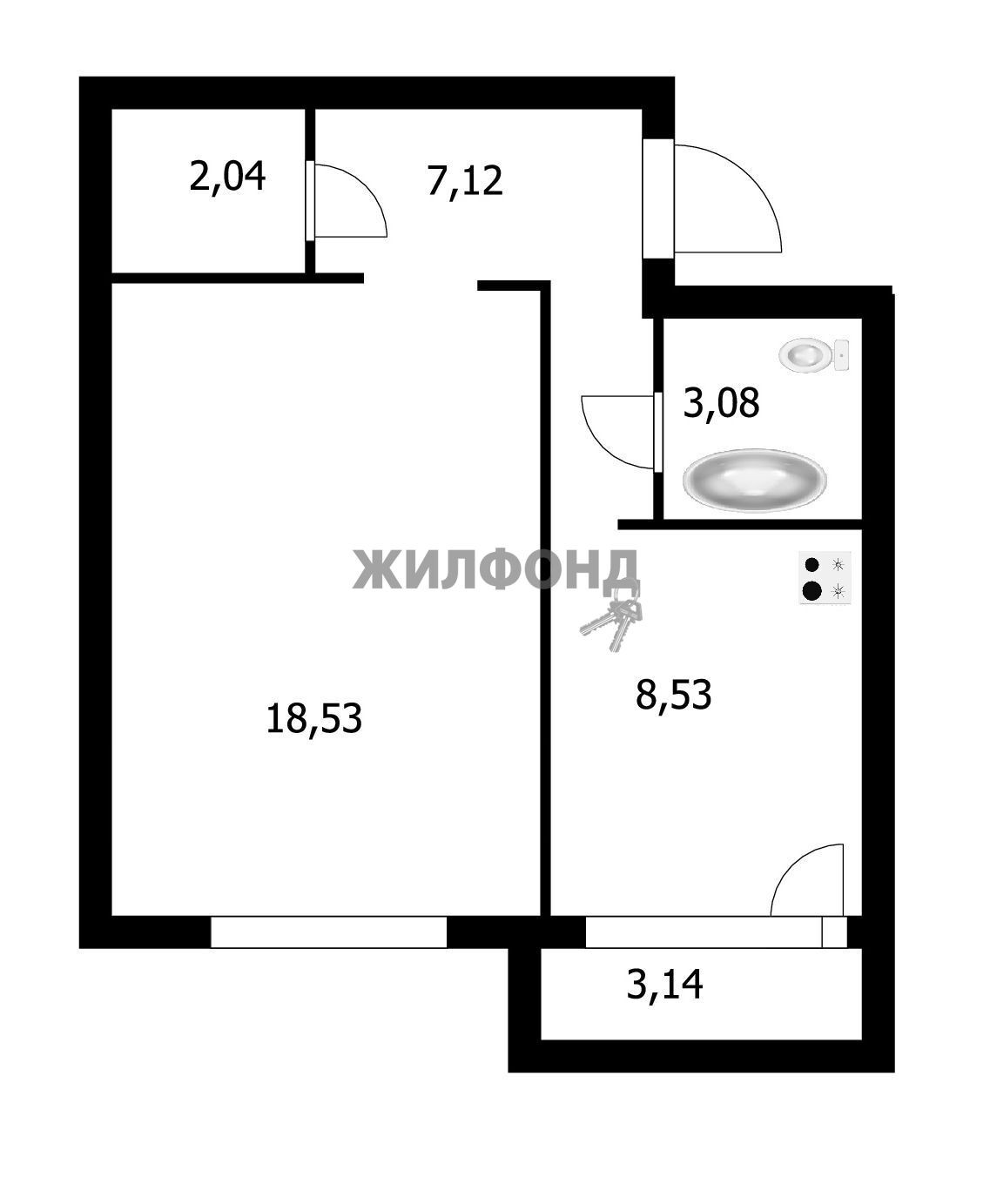 Жилая площадь 19 м2