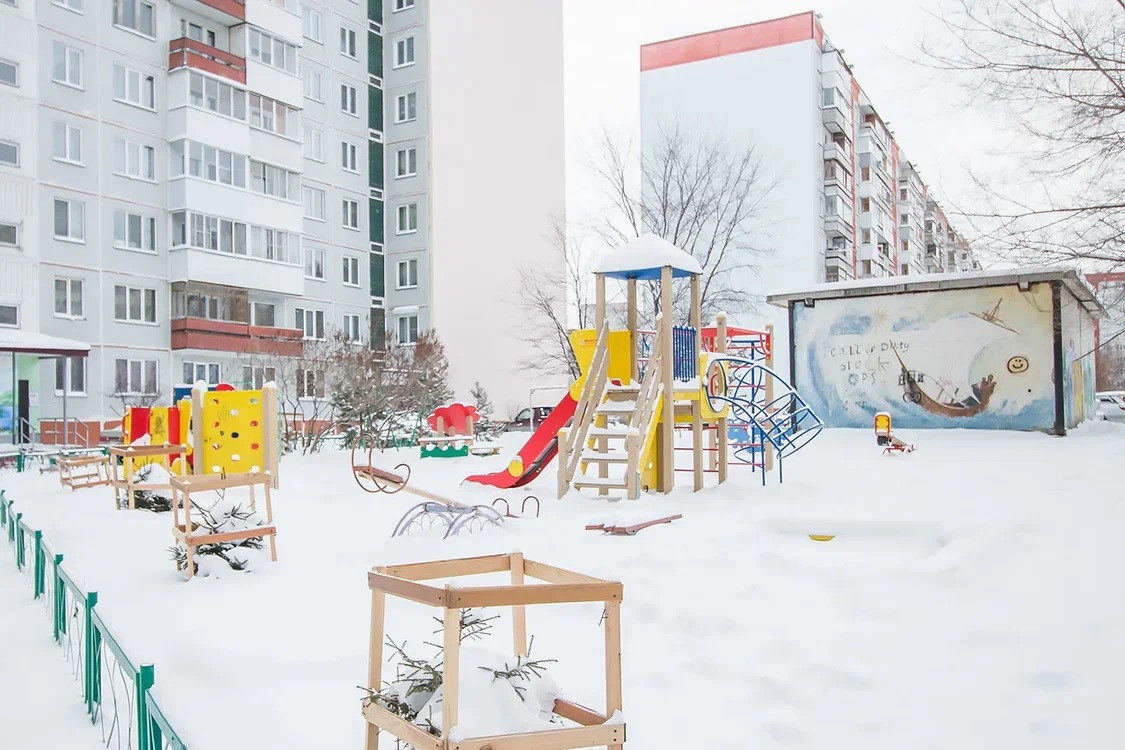 Детская площадка, школа, 4 детских сада, поликлиника, парковка, спортзал, библиотека, школа искусств, множество магазинов, рынок, банк.