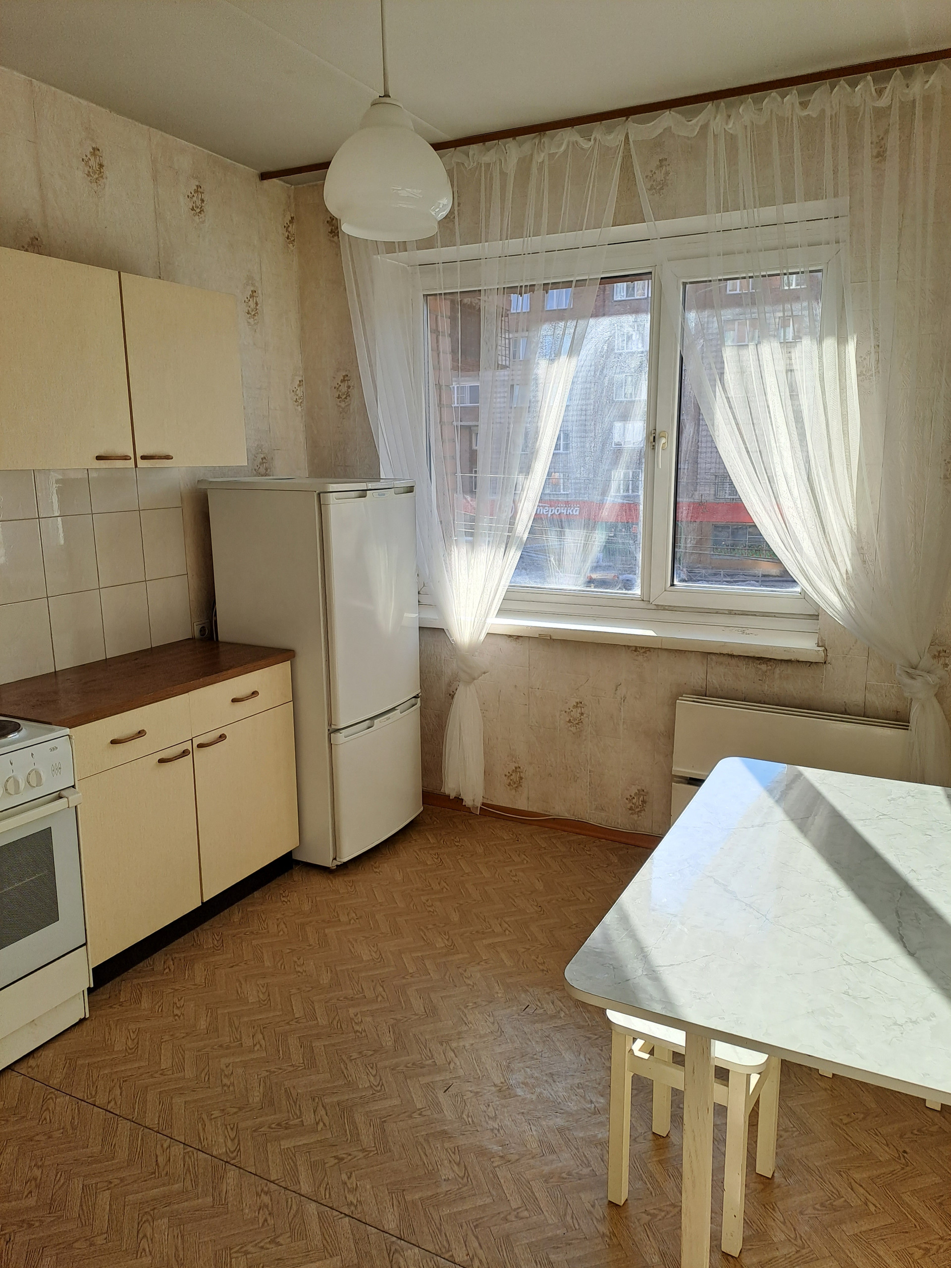 Однокомнатная квартира в кирпичном доме площадью 37,6 м2 с интересной планировкой. Комната -18 м2, большая кухня -9.9 м2, вместительный коридор -6.1 м2, удобная ванная комната -3,6 м2. Планировка квартиры очень удачная. Во дворе дома расположена детская площадка. Вместительная наземная парковка. Въезд на территорию дома через шлагбаум. В шаговой доступности продовольственные магазины,аптека, почта, сбербанк, школа, остановка общественного транспорта. До станции метро пл.Маркса 15 минут пешком.  Один собственник, квартира без обременения. Чистая продажа. Продажа от собственника