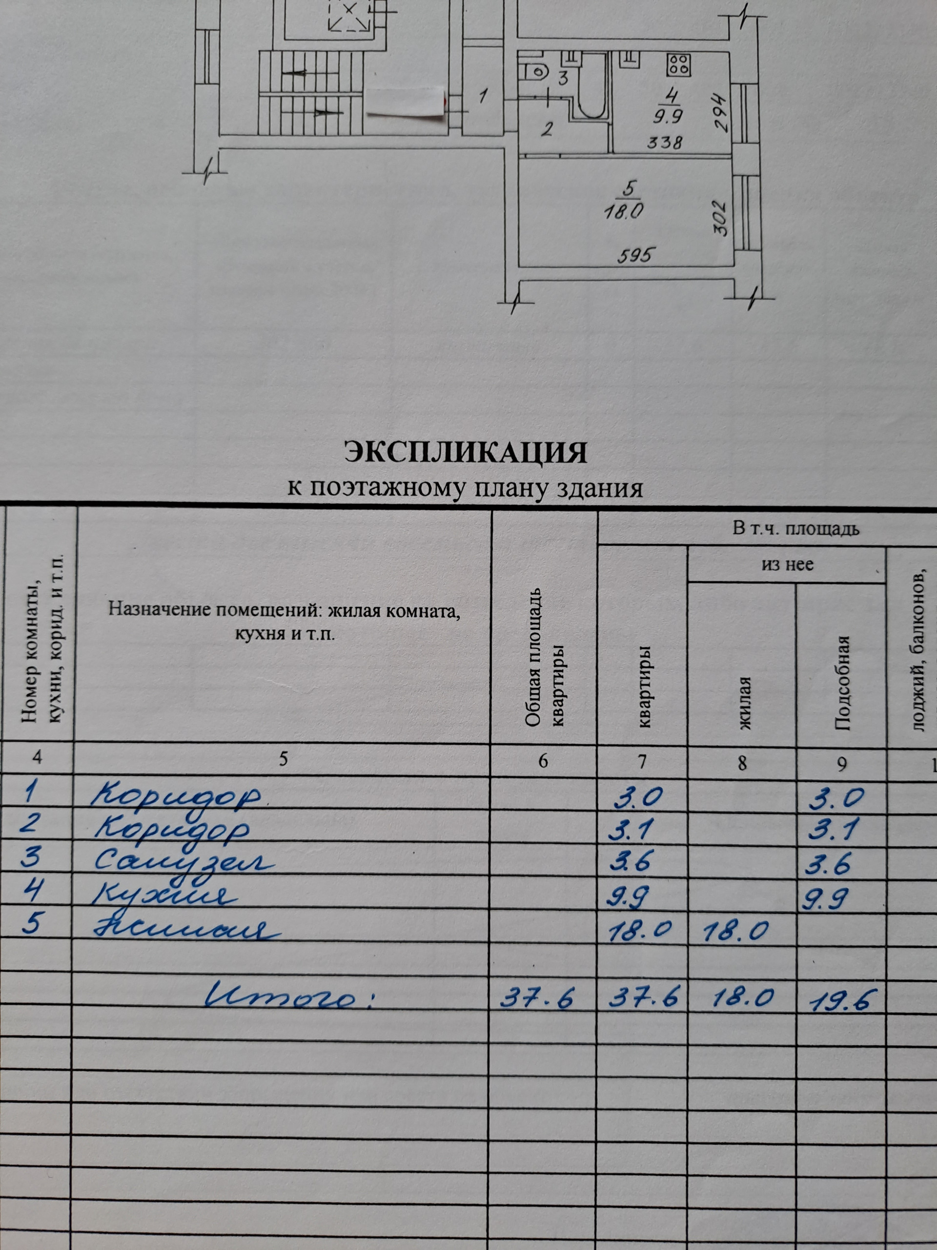 Общая площадь 37.6 м2