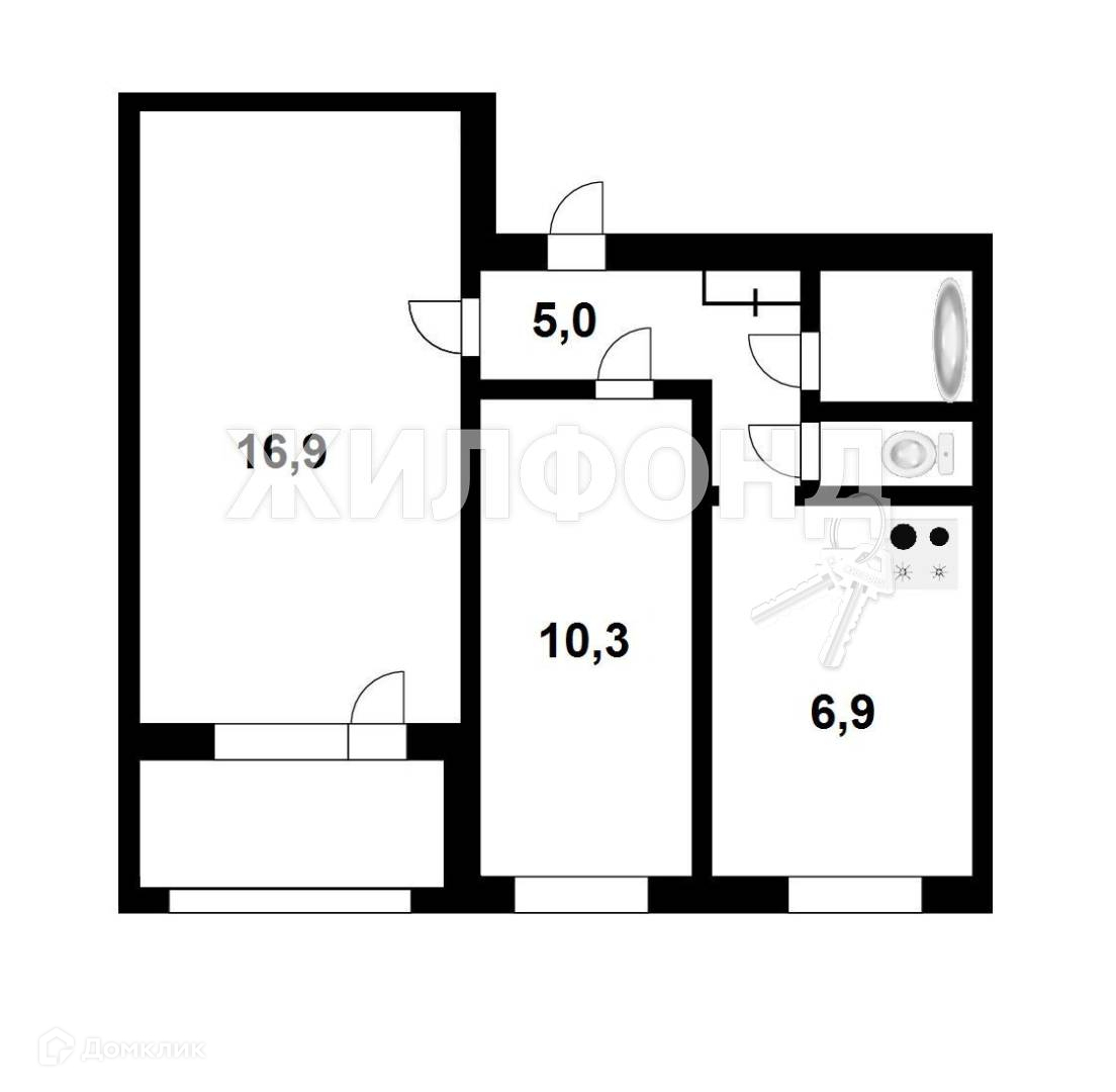 2-комнатная квартира, 43.3 м2, этаж 9 / 9, на продажу в Новосибирске, Рельсовая улица, 1