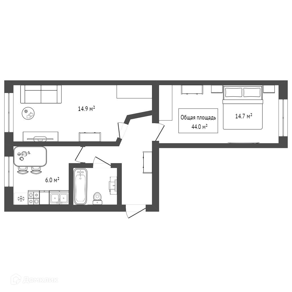 Общая площадь 44 м2