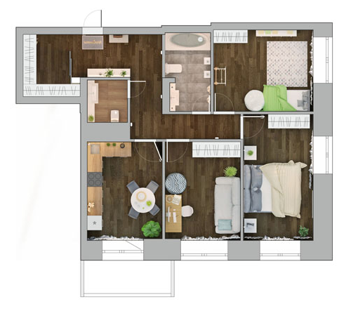 +практичная планировка на две стороны с одной из комнат с угловым остеклением (много света)