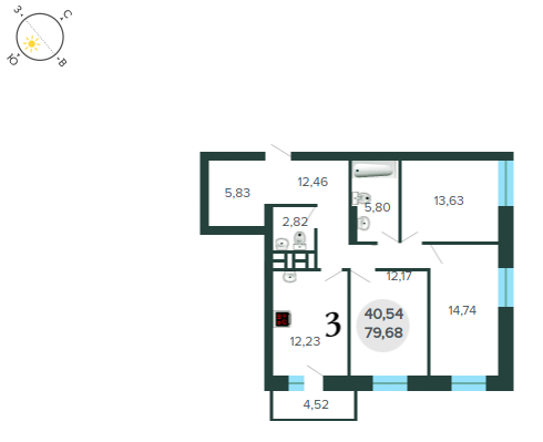 Общая площадь 79.68 м2