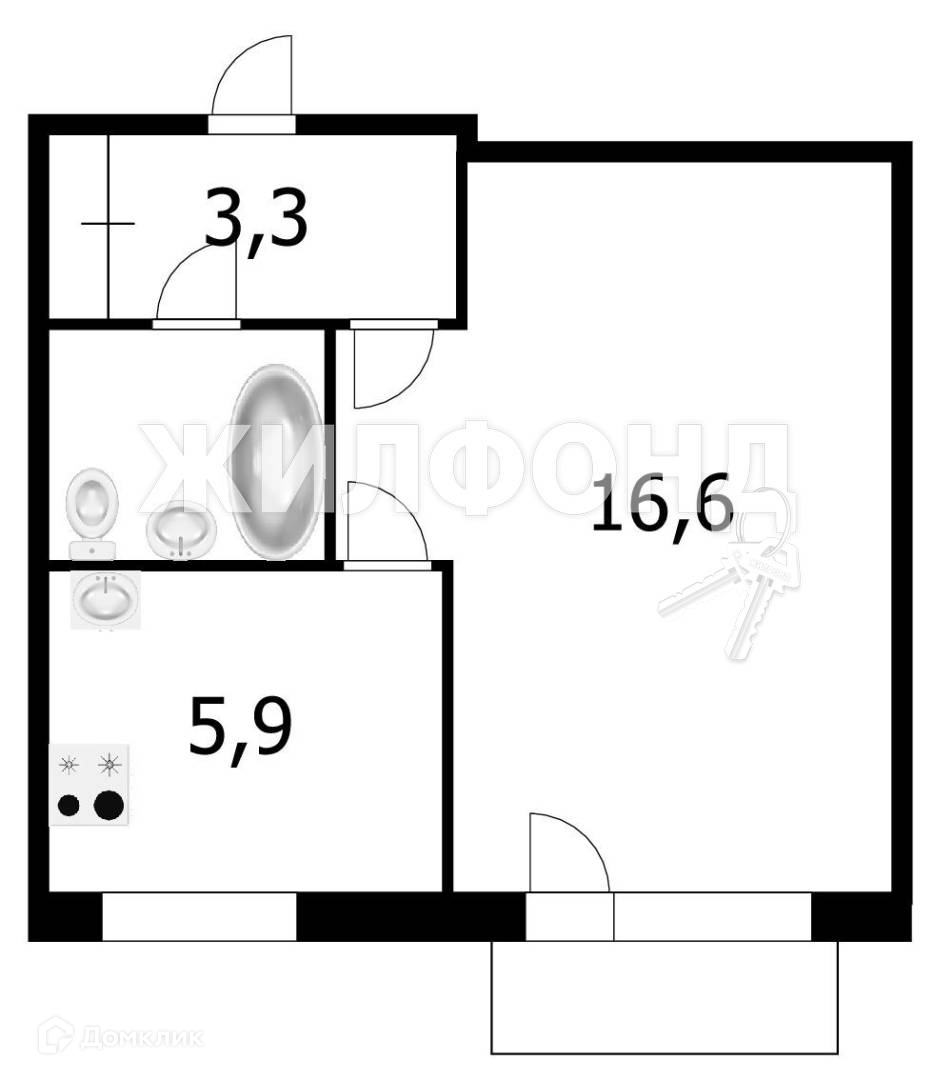 1-комнатная квартира, 29.2 м2, этаж 4 / 5, на продажу в Новосибирске, улица Михаила Перевозчикова, 5/1