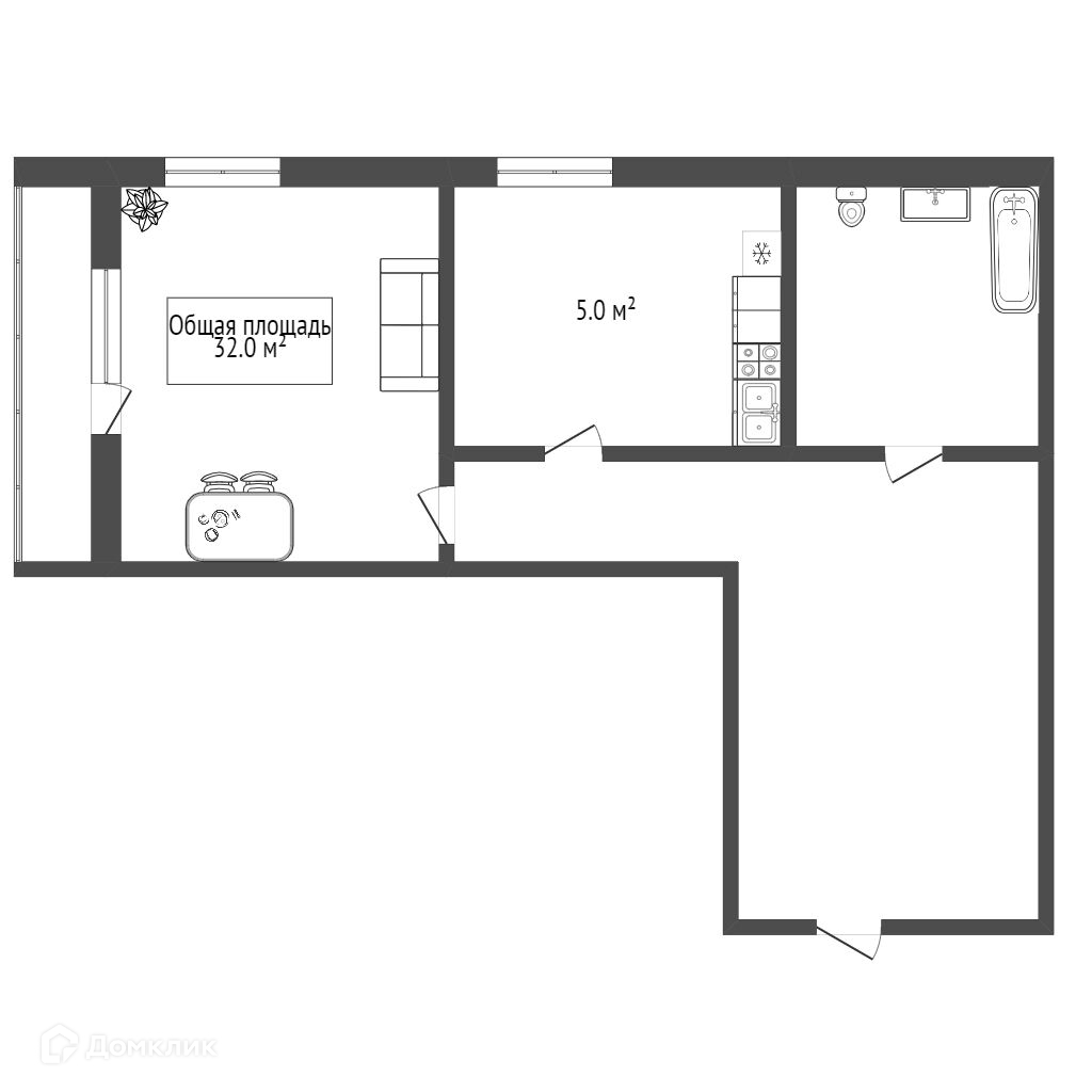 Общая площадь 42 м2