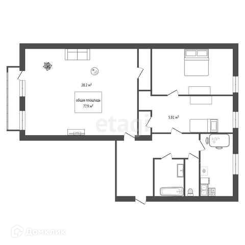 Общая площадь 77.9 м2