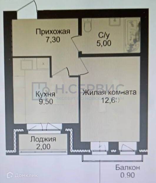 Жилая площадь 12.6 м2