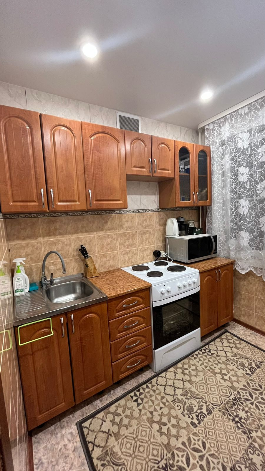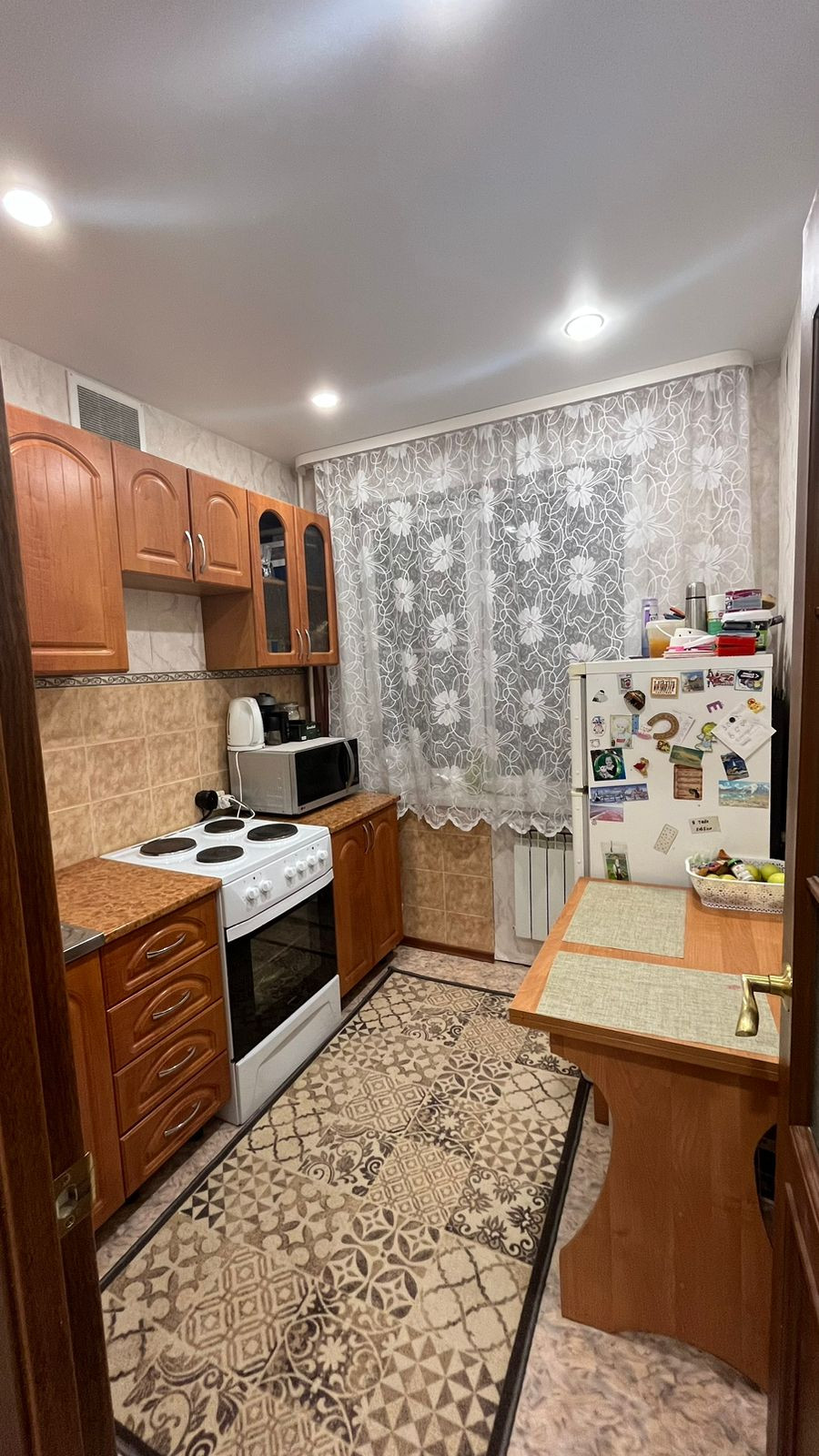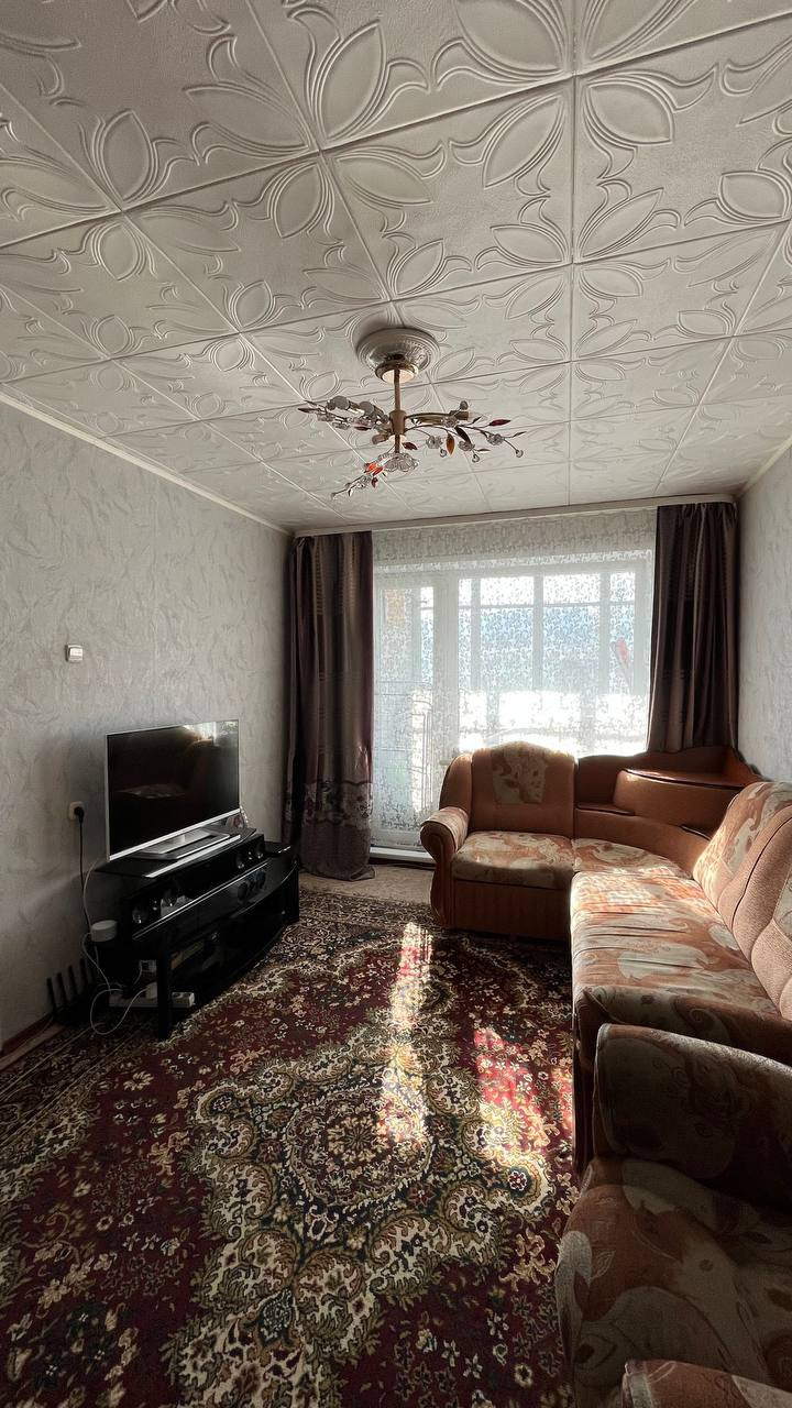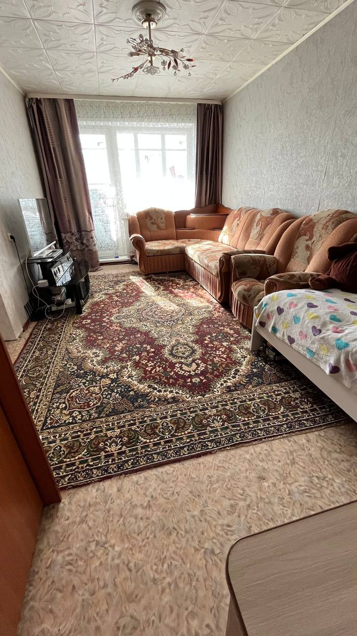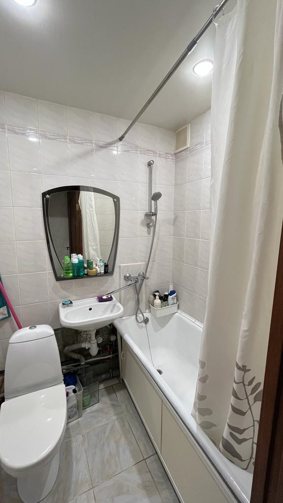 Жилая комната 17 м2 с выходом на лоджию. Лоджия просторная, застекленная. Санузел совмещенный, кафель. Вся сантехника в рабочем состоянии, установлены водосчётчики. В коридоре встроенная гардеробная с большими зеркалами. В кухне и коридоре натяжной потолок.