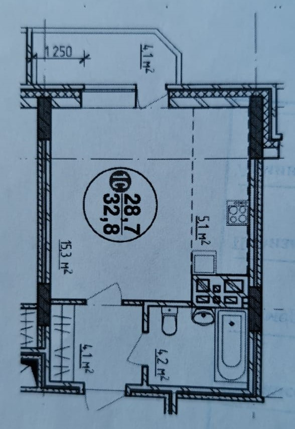 Общая площадь 28.7 м2