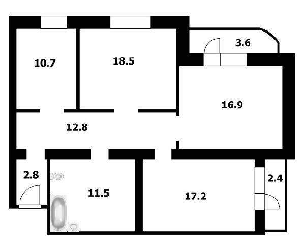 Жилая площадь 52.6 м2