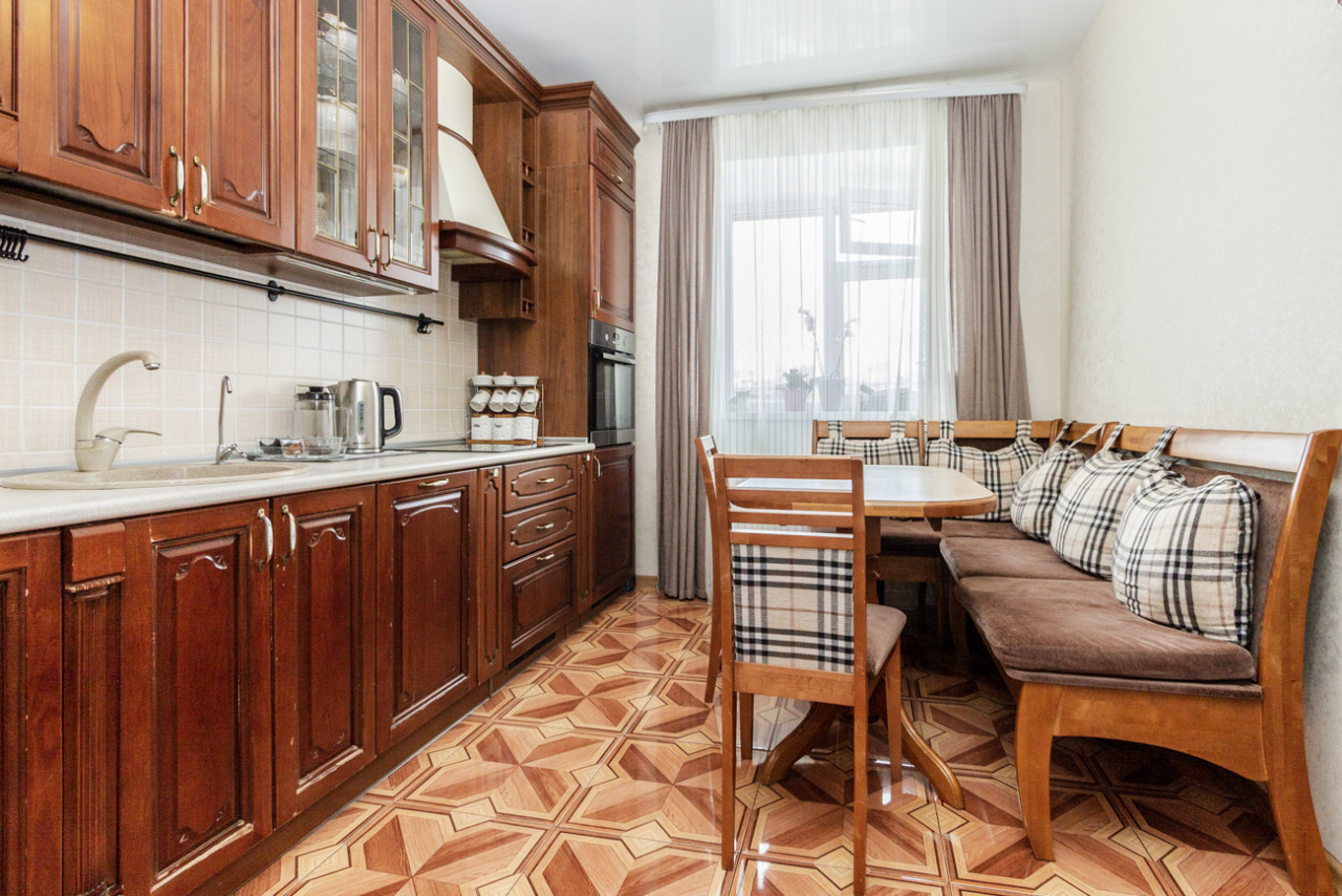 ОСТАЕТСЯ: Кухонный гарнитур, вся встроенная техника (посудомоечная машина, вытяжка, варочная панель, духовой шкаф), встроенный шкаф в коридоре, плательный шкаф в спальне, все люстры.